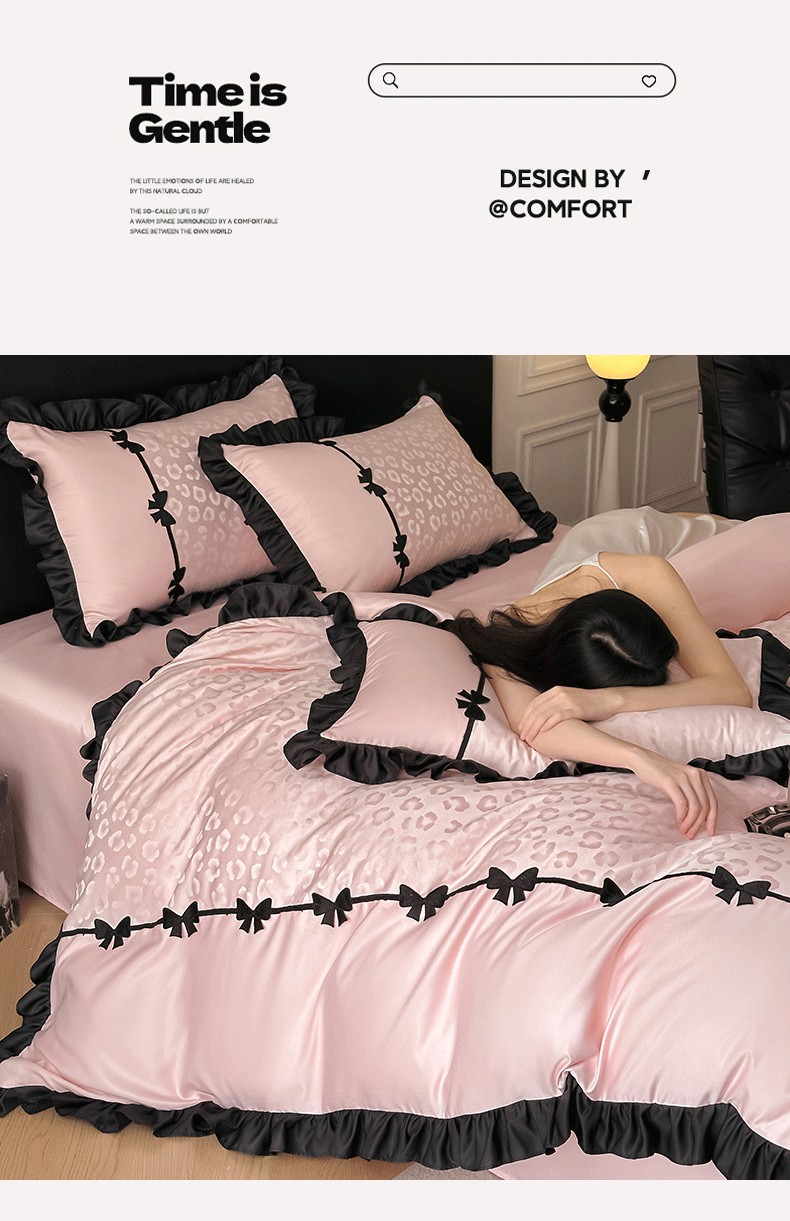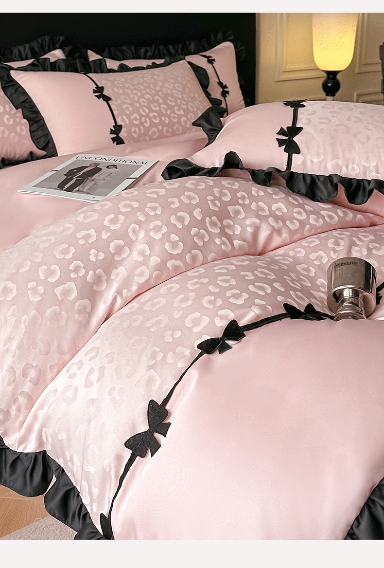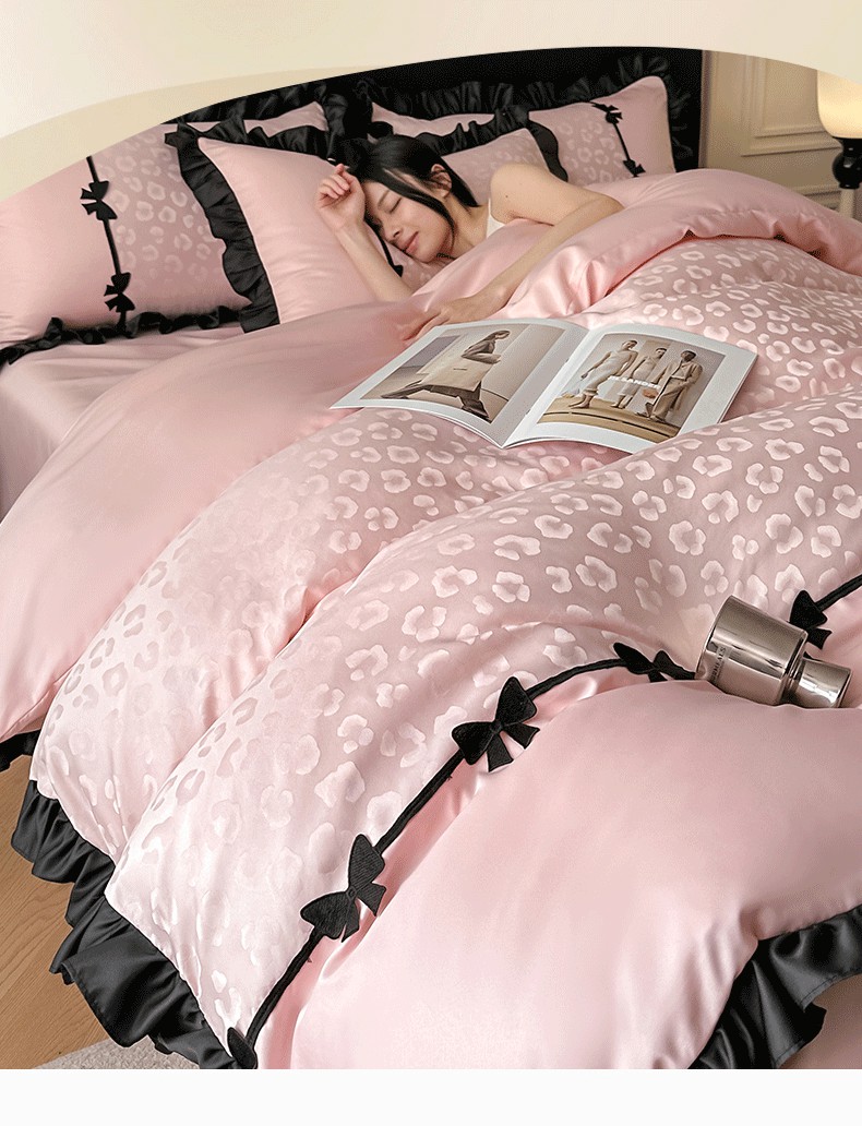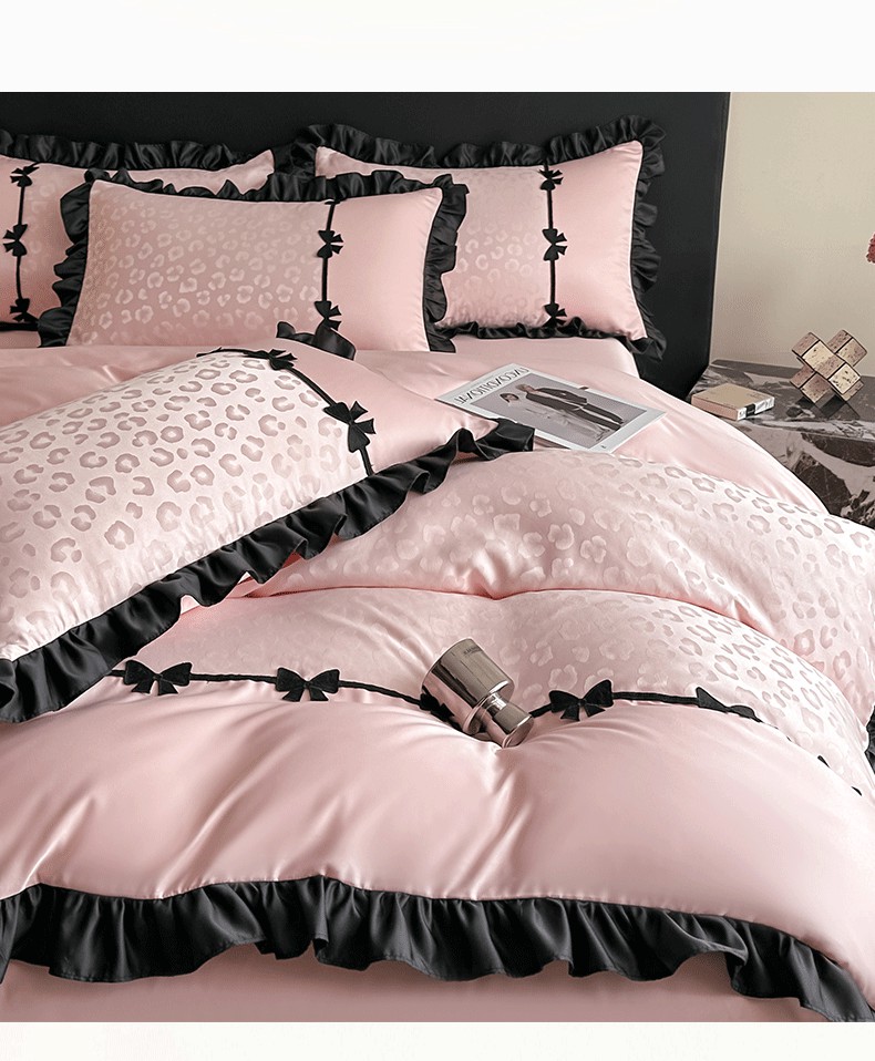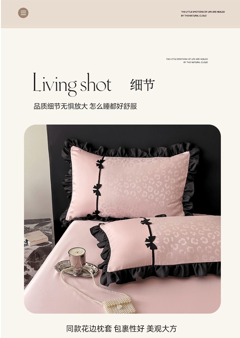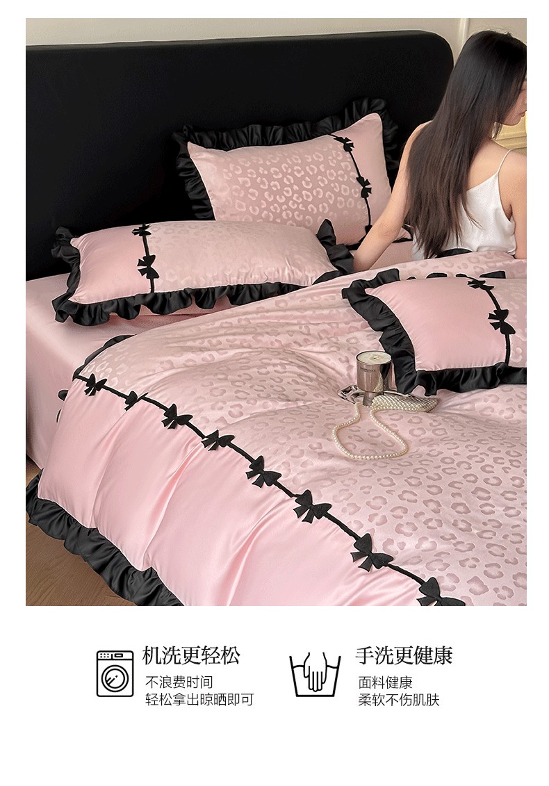 商品名称:首尔家纺 2026新款水洗真丝拼接款豹纹提花四件套 豹纹-公主粉