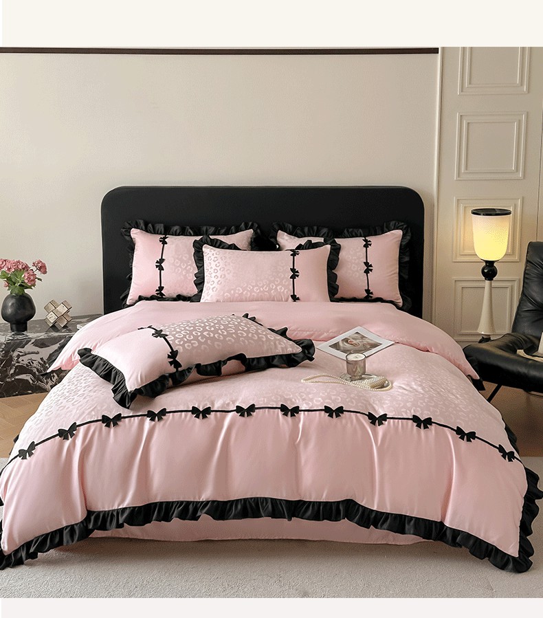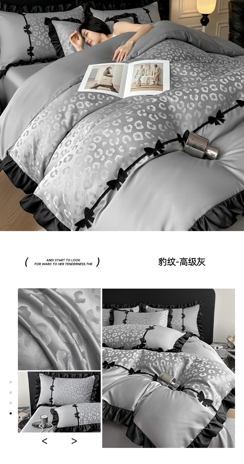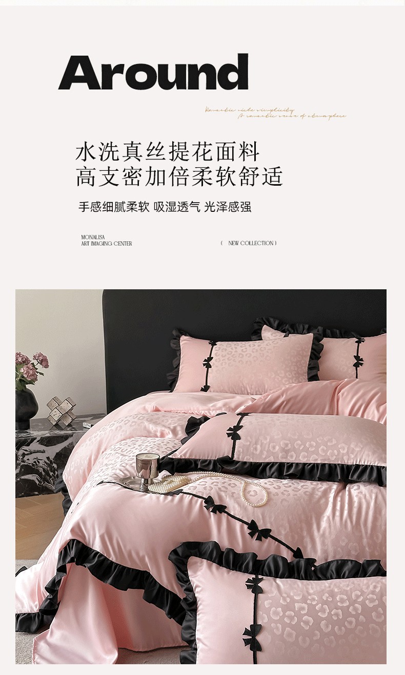 首尔家纺 2026新款水洗真丝拼接款豹纹提花四件套 豹纹-公主粉