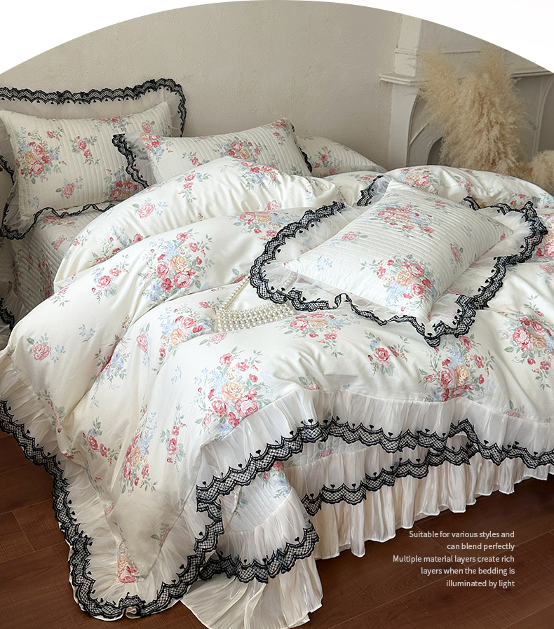 (总)恋尚 2026新款全棉纯棉蕾丝印花床笠裙四件套,芙微,花蝶语,花牺,蔓朵,浅栀,夏瑶,向朵,寻芳朵朵,荨花