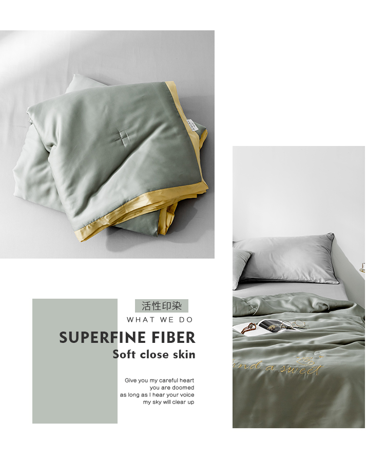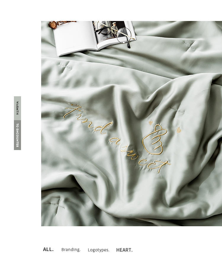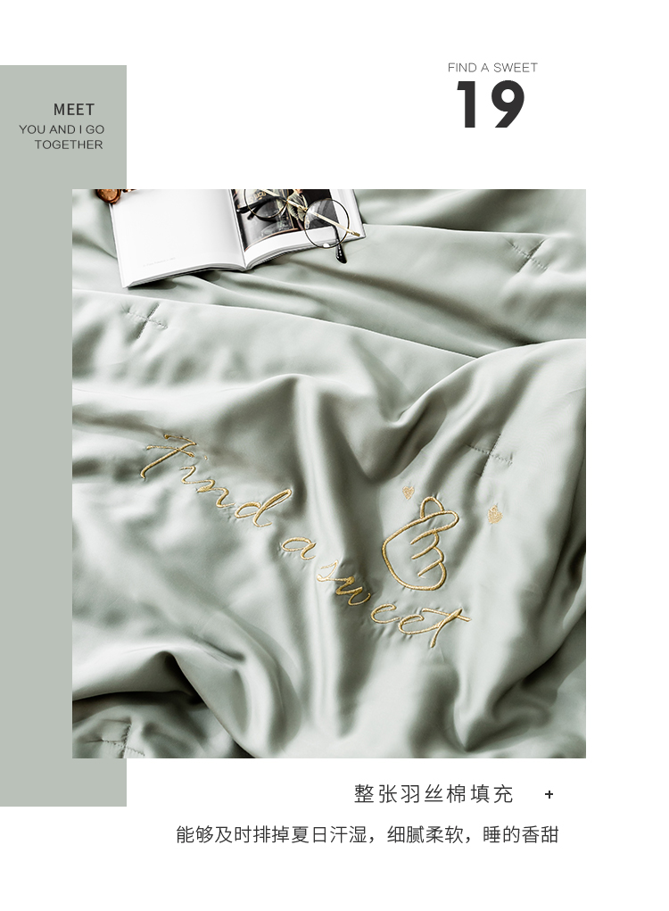 润缦家纺 2019新款60天丝夏被比心系列 会湖绿