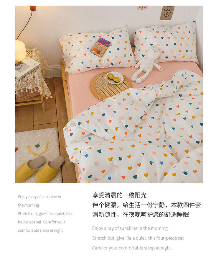 当前位置: 91家纺网 > 商品网购 > 床品套件 > 四件套 > 全棉普通四件套 > 艾沁2020新款日系小清新全棉纯棉四件套 心晴-粉