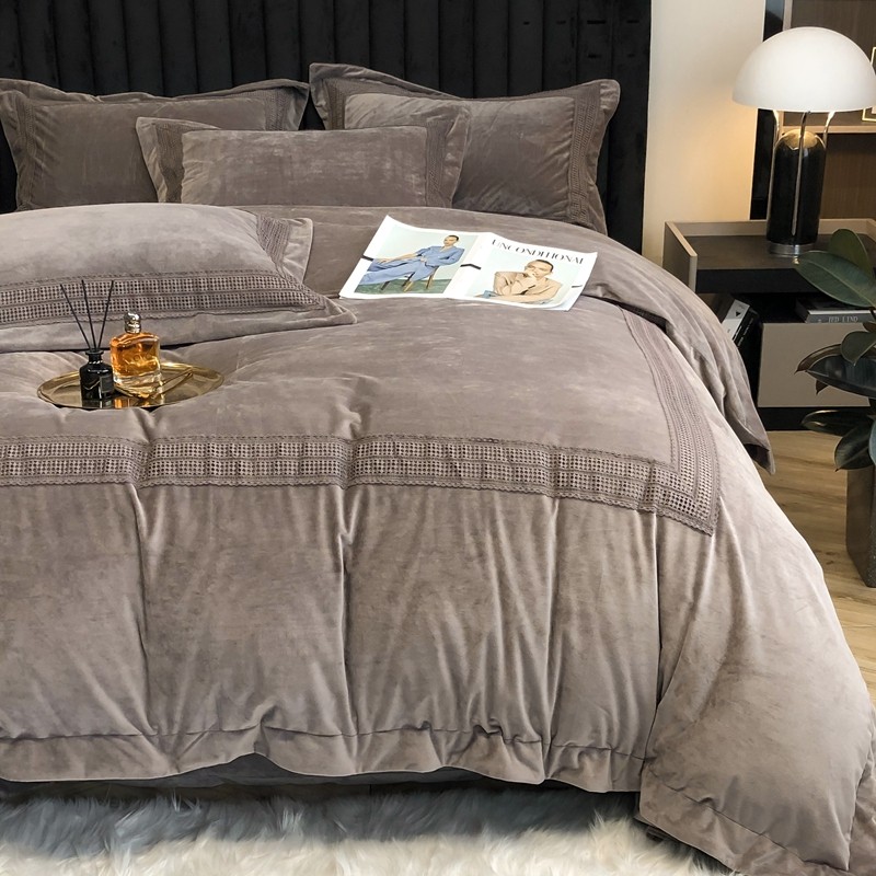 榻尚2023新款进口蕾丝缕空260克公主绒加厚牛奶绒秋冬款四件套,低调的华丽-粉玉,低调的华丽-海雾蓝,低调的华丽-奶茶棕,低调的华丽-象牙白
