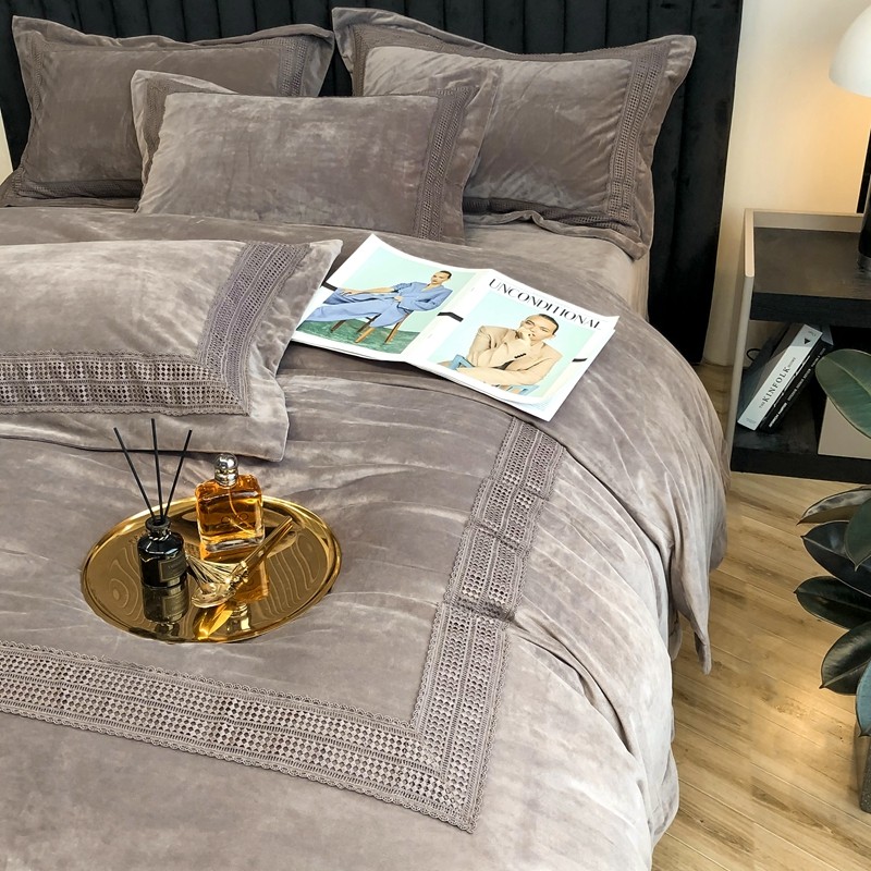 榻尚 2021新款柔肤绒花边款四件套遇见系列 咖