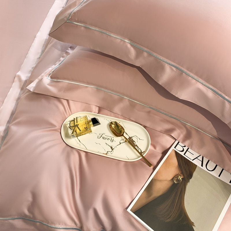 (总)榻尚家居 2025新款天丝床盖夏被夏凉被空调被四件套-佩利兹,佩利兹床盖夏被四件套-粉色,佩利兹床盖夏被四件套-香槟