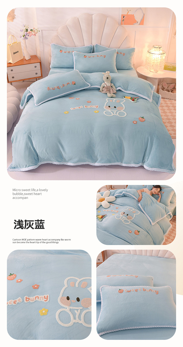 (总)菲儿 2021新款牛奶绒四件套法莱水晶绒,宝宝兔-海洋蓝,宝宝兔-米白,宝宝兔-柠檬黄,宝宝兔-藕粉,宝宝兔-水绿,宝宝兔-紫丁香,快乐熊-玫瑰紫,快乐熊-嫩绿,快乐熊-乳白,快乐熊-桃花粉,快乐熊-蔚蓝,快乐熊-玉米黄