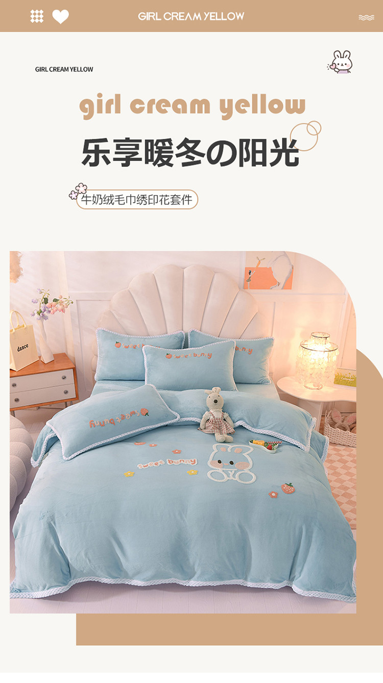 (总)菲儿家纺 2023新款牛奶绒毛巾绣四件套,可爱兔-粉,可爱兔-黄,可爱兔-蓝,可爱兔-绿,可爱兔-紫,小蘑菇-白+粉,小蘑菇-白+黄,小蘑菇-粉,小蘑菇-黄,小蘑菇-蓝,小蘑菇-绿,小蘑菇-紫