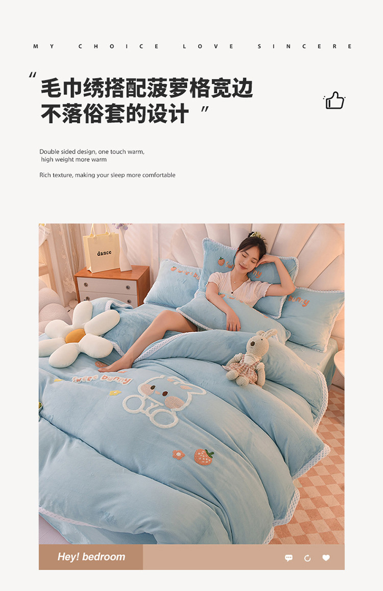 (总)菲儿 2022新款毛巾绣牛奶绒四件套,旺仔-粉玉,旺仔-萝莉粉,旺仔-麦穗黄,旺仔-梦蓝,旺仔-抹茶绿,旺仔-奶西白,旺仔-香芋紫,甜蜜小兔-浅灰蓝,甜蜜小兔-浅紫,甜蜜小兔-秋梨黄,甜蜜小兔-仙女粉,甜蜜小兔-星冰绿,甜蜜小兔-阳光玉,甜蜜小兔-芝士白