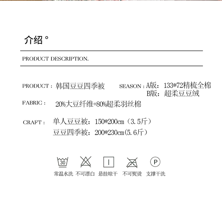 商品名称:源启生活 2022新款嵌绳包边韩国豆豆四季被被子被芯 安妮花园