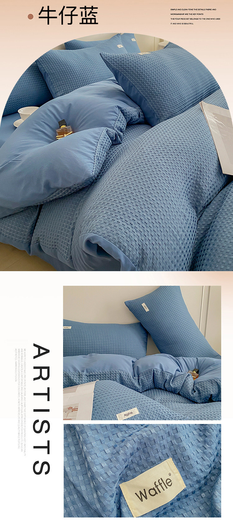 当前位置: 91家纺网 > 商品网购 > 床品套件 > 四件套 > 全棉普通四件套 > 仟网汇 2023爆款华夫格-森语系列 四件套 牛仔蓝