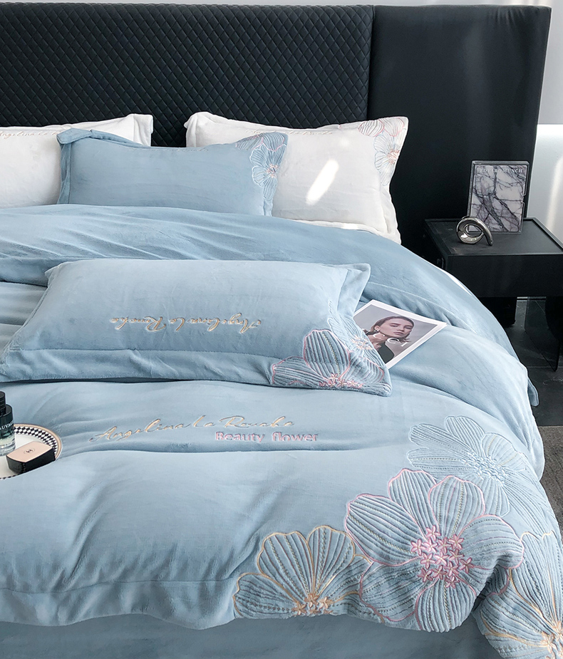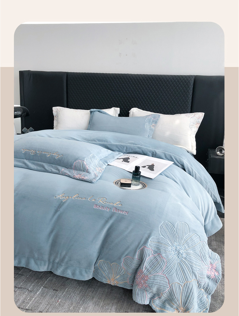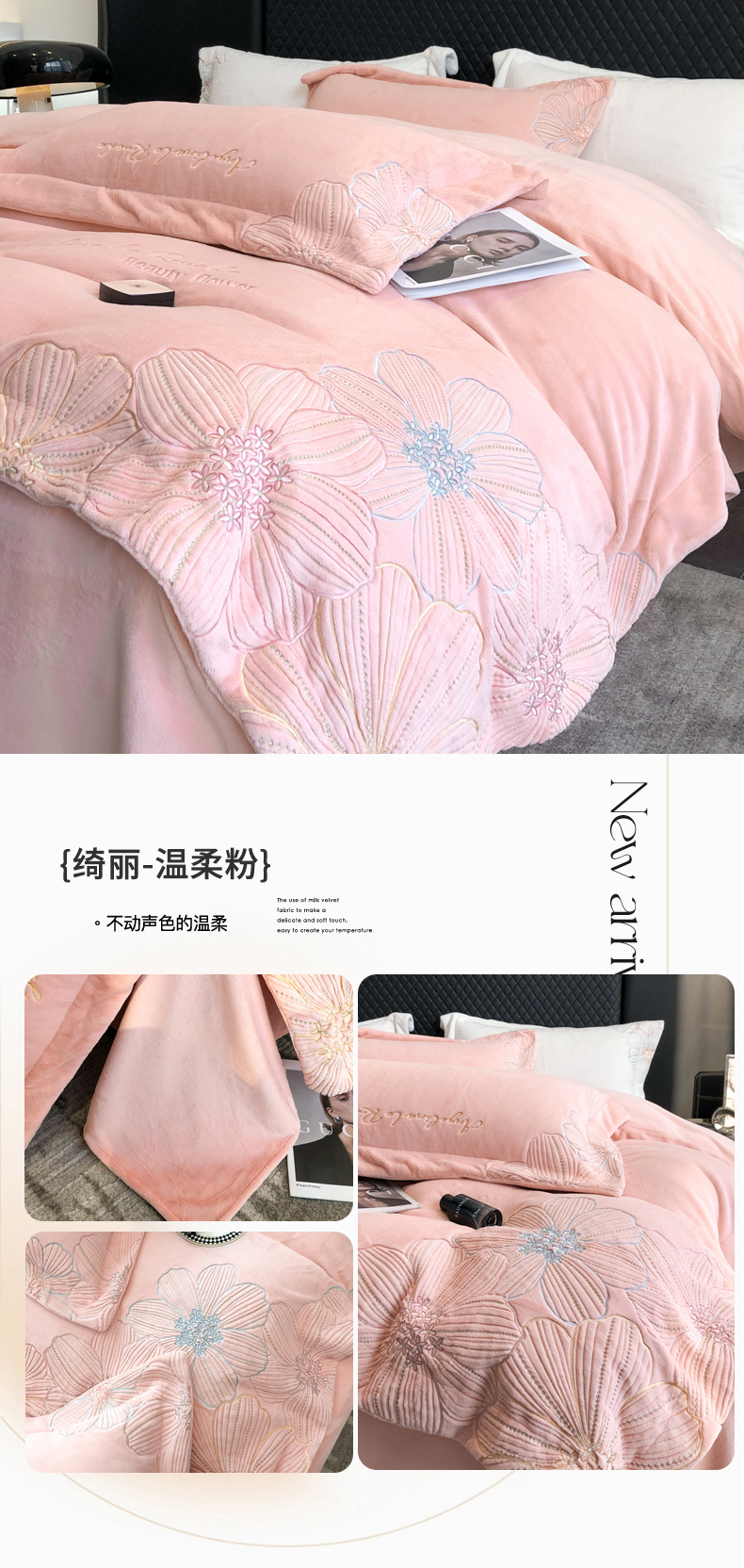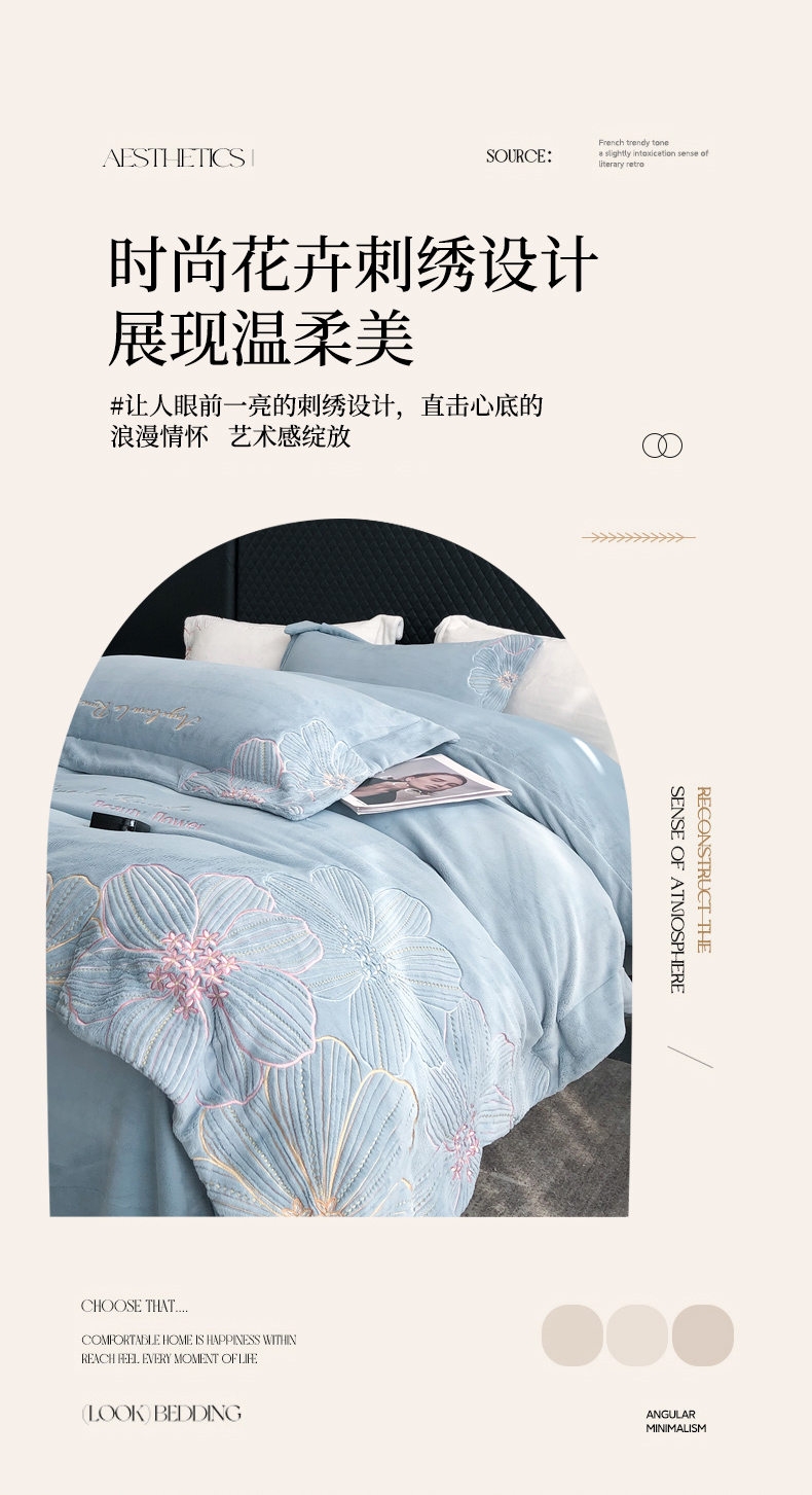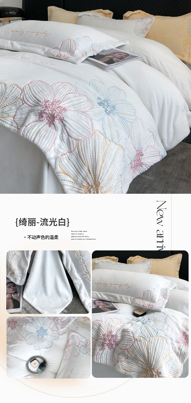 当前位置: 91家纺网 > 商品网购 > 床品套件 > 四件套 > 牛奶绒四件套 > (总)星蕴家纺 2023新款220克全消光牛奶绒刺绣宽边四件套-绮丽