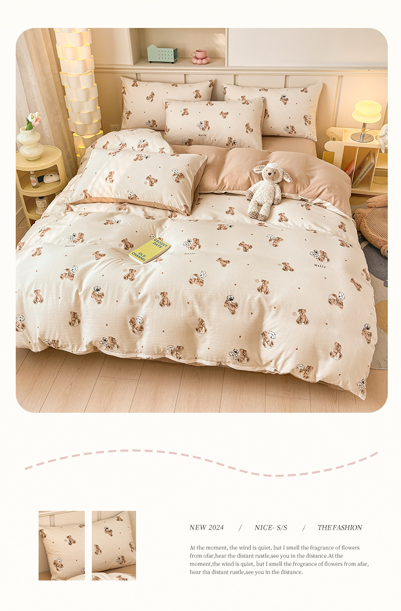 (总)梦之岛 2023新款A类母婴级双层纱水洗棉麻夏凉被四件套,可爱熊,夏朵,小柠檬,小菠萝,爱丽丝,甜心兔,绿野仙踪,雅韵