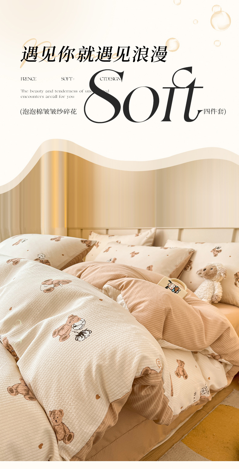 (总)梦之岛 2024新款A类母婴级泡泡棉皱皱纱碎花四件套