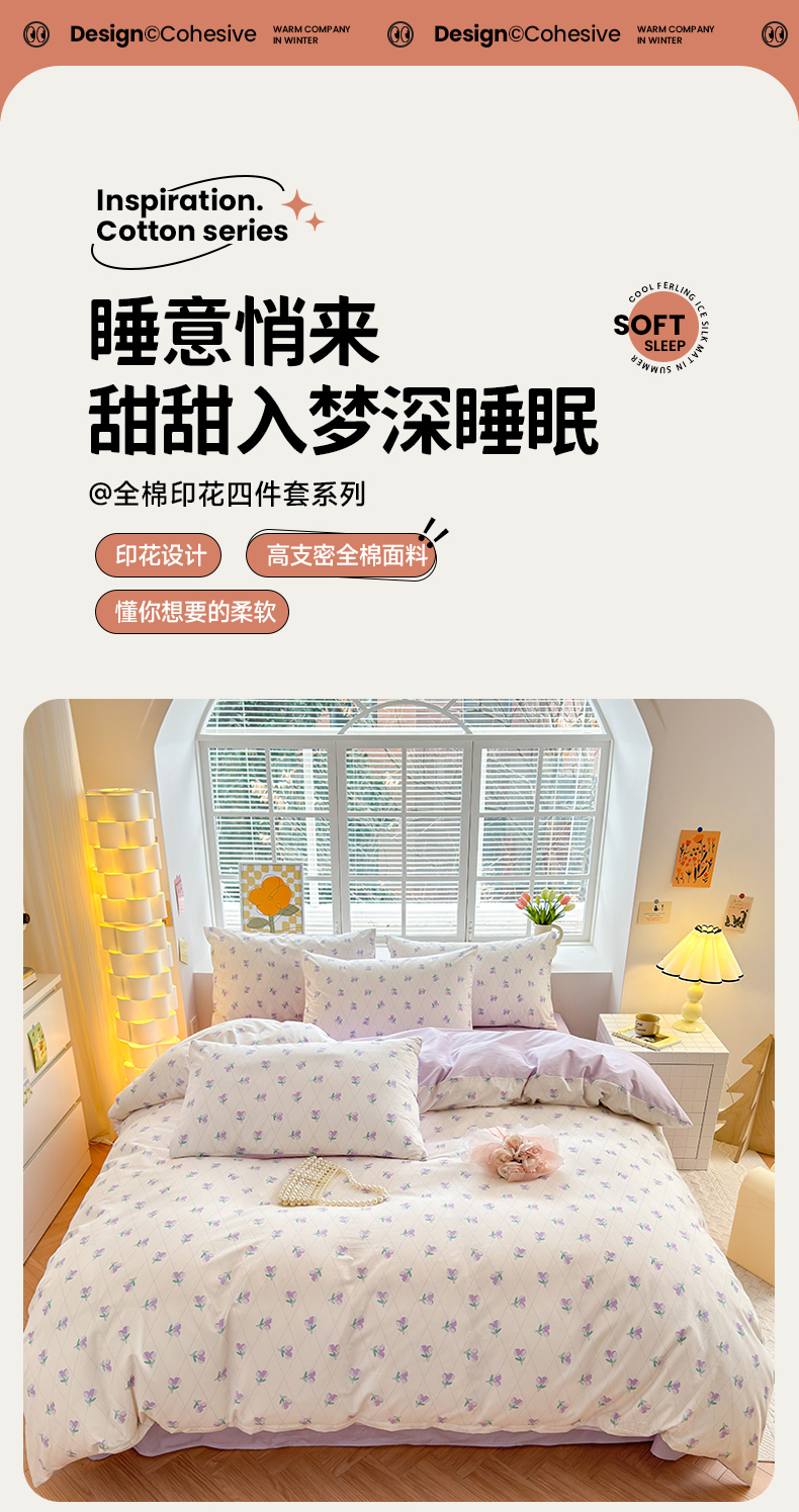 (总)沐棉家居 2025新款全棉印花四件套,安娜花园,春风慕颜,春色满园,淡香花语,蝴蝶结,花梦,可爱熊猫,露丝,嘻嘻兔,幸福小兔,优雅花朵,紫花小羊,紫藤蔓蔓