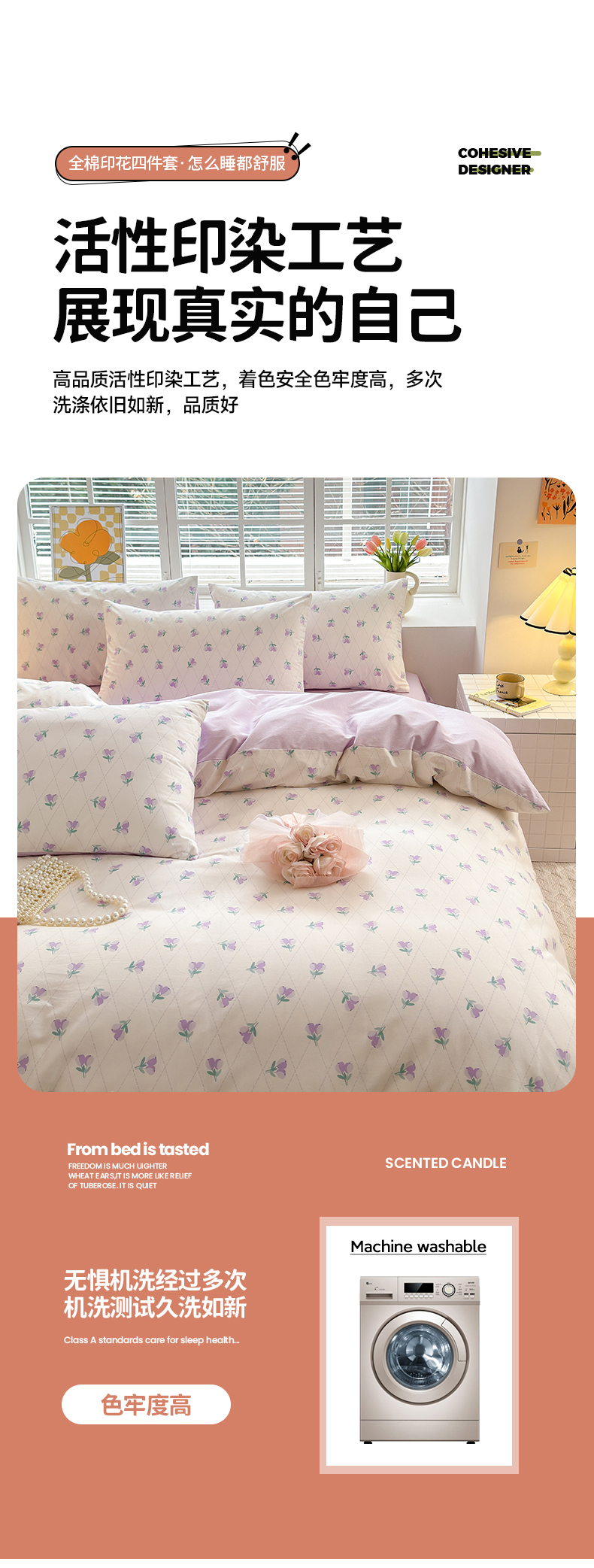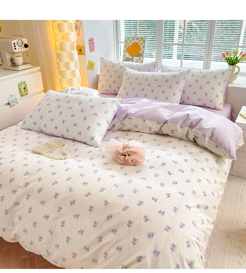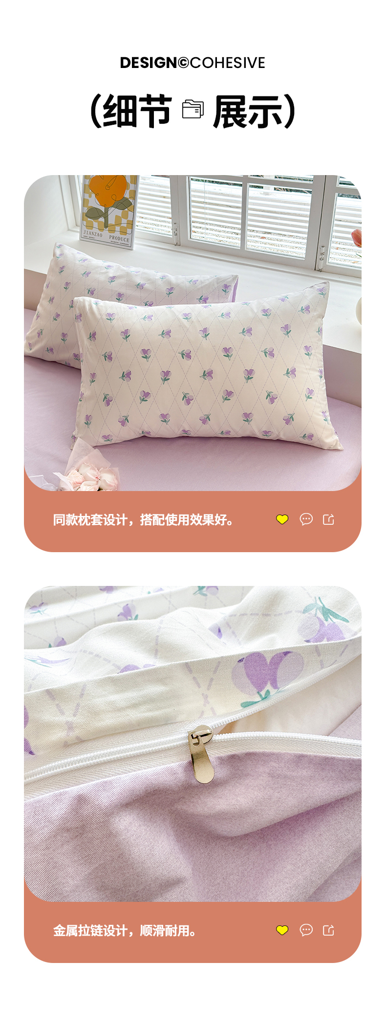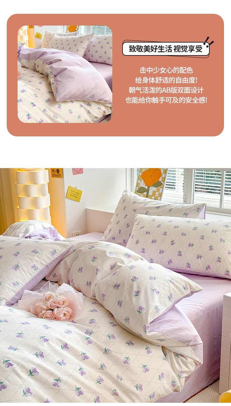 商品名称:沐棉家居 2024新款小清新全棉13372印花单被套 紫色花语