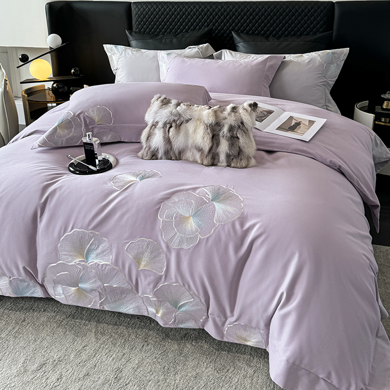 商品名称:沐白家居 2024新款100支长绒棉磨毛四件套 彩虹紫