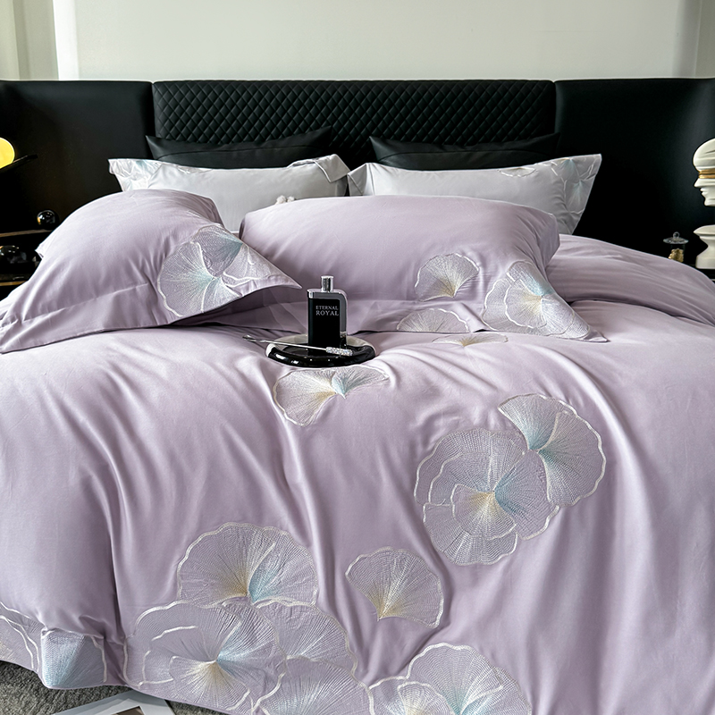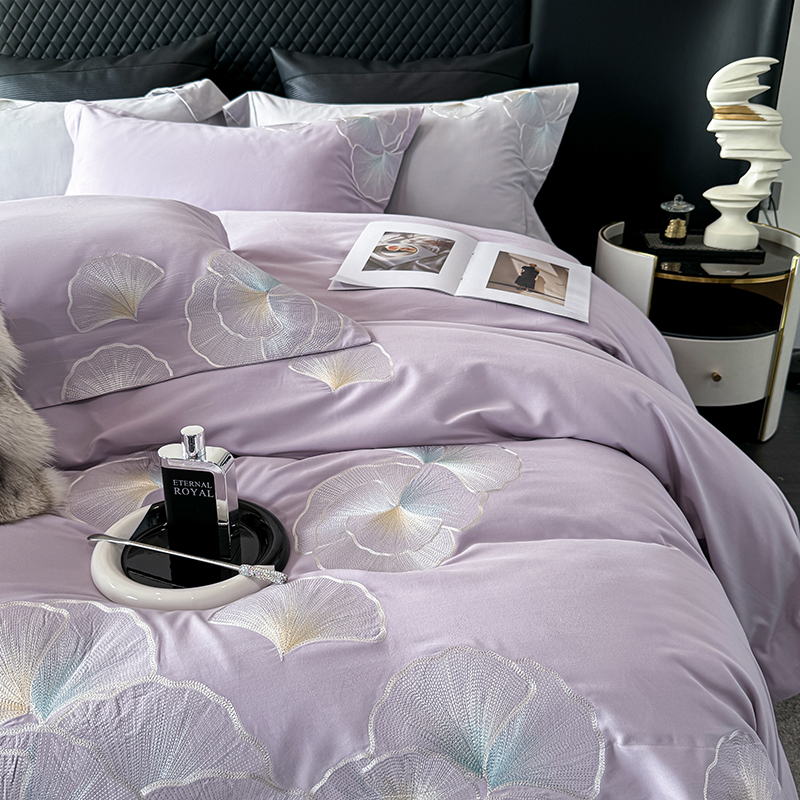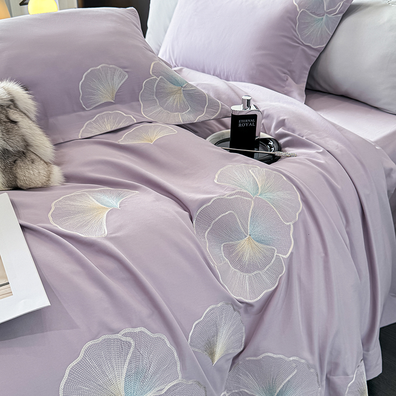 沐白家居 2024新款100支长绒棉磨毛四件套 彩虹紫