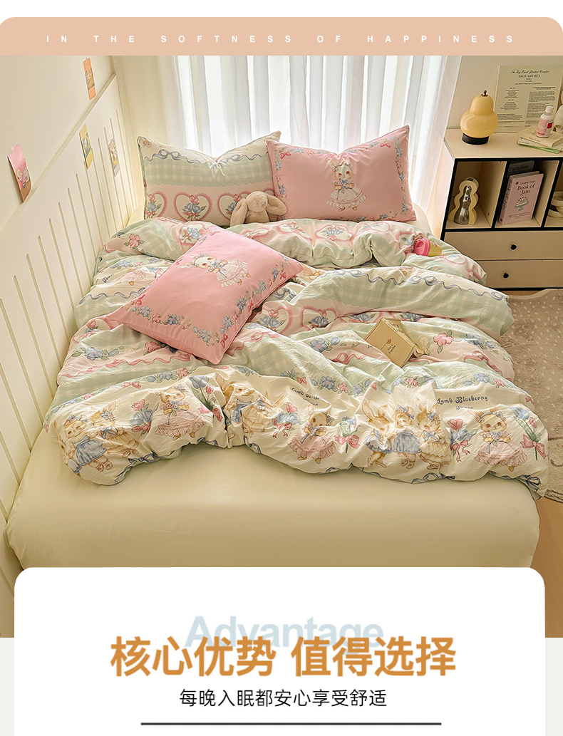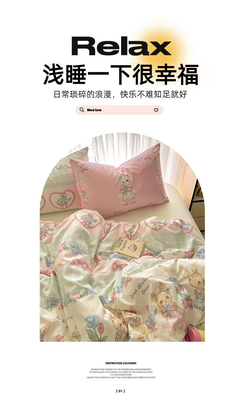 当前位置: 91家纺网 > 商品网购 > 床品套件 > 四件套 > 水洗棉四件套 > 春光里 2025新款水洗棉印花系列四件套 莉莉安兔