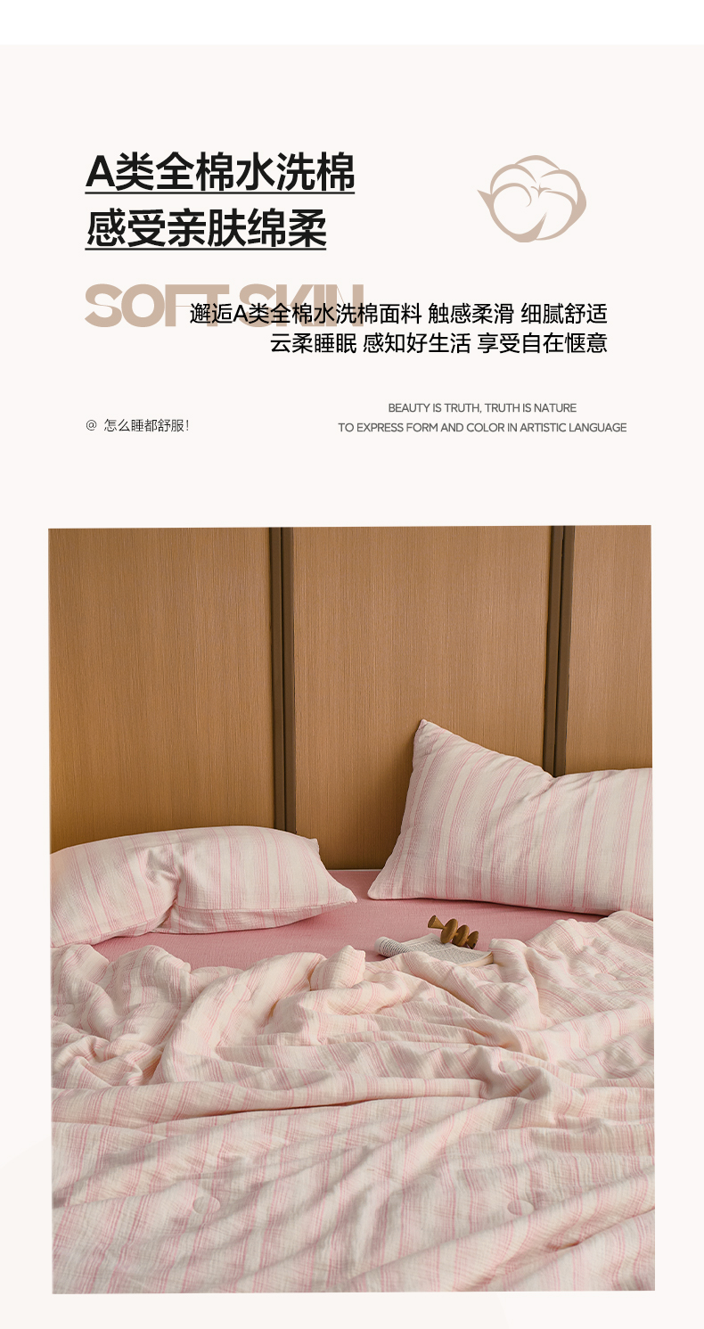 商品名称:(总)一加一 2025新款A类母婴级水洗全棉无印双层皱皱纱牛奶蛋白夏被四件套