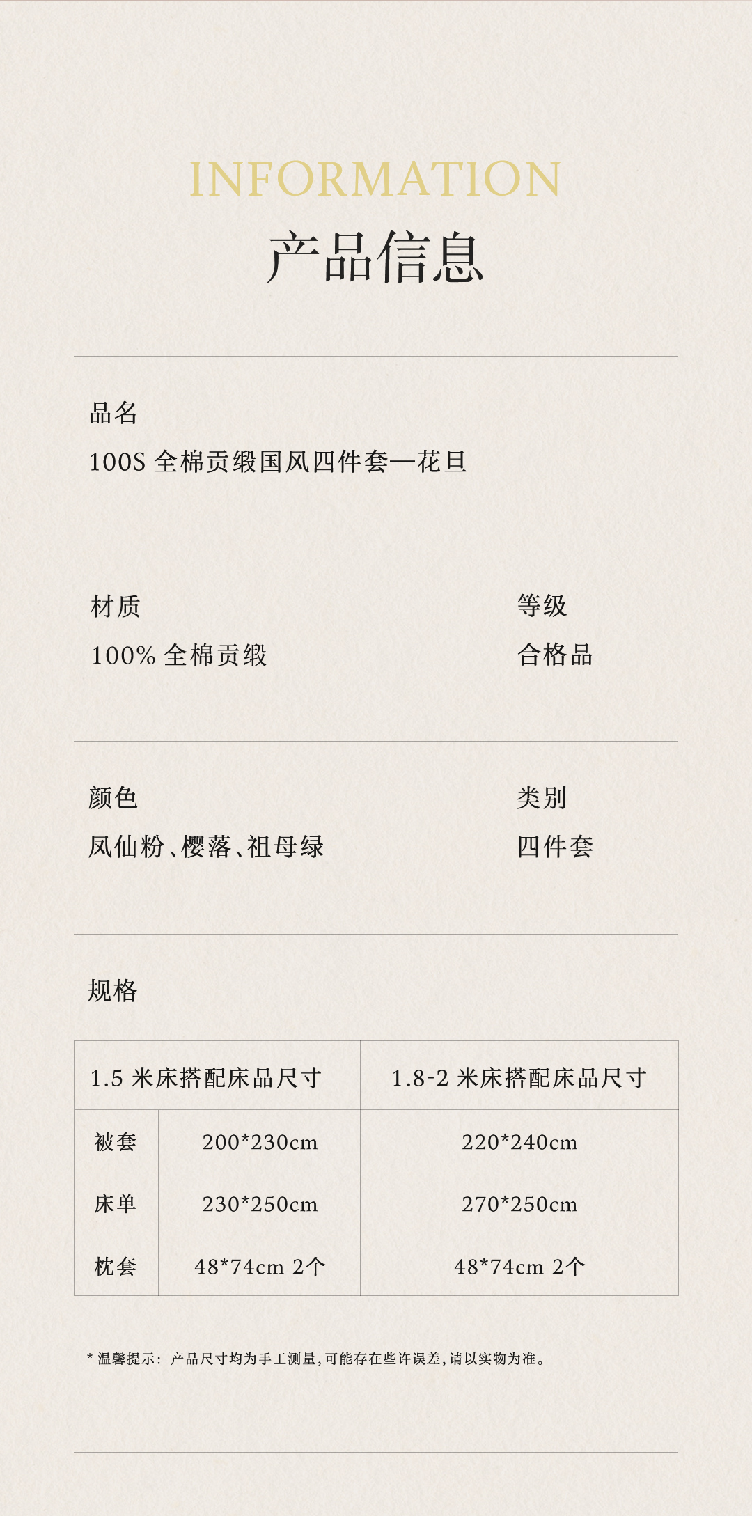 商品名称:2025佑金甜新款100支全棉贡缎中国风新疆长绒棉纯色双拼四件套(礼盒塑封包装) 花旦-樱落