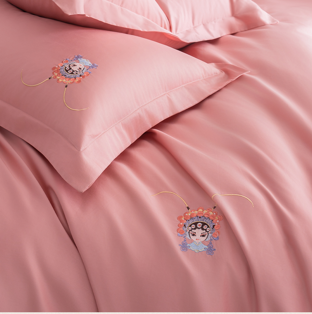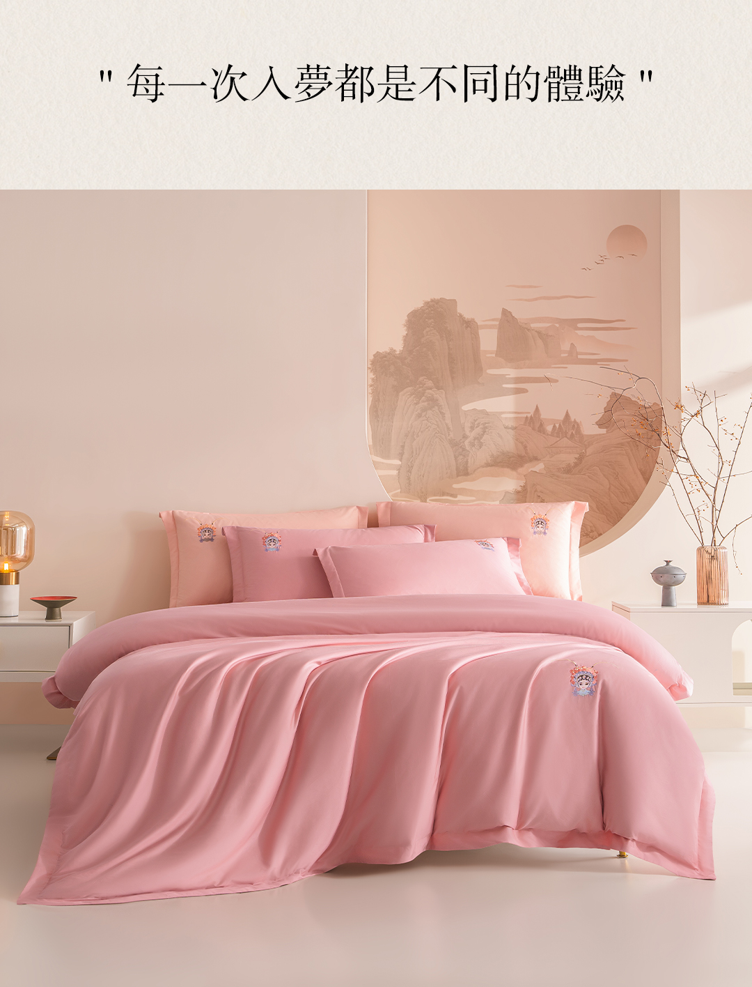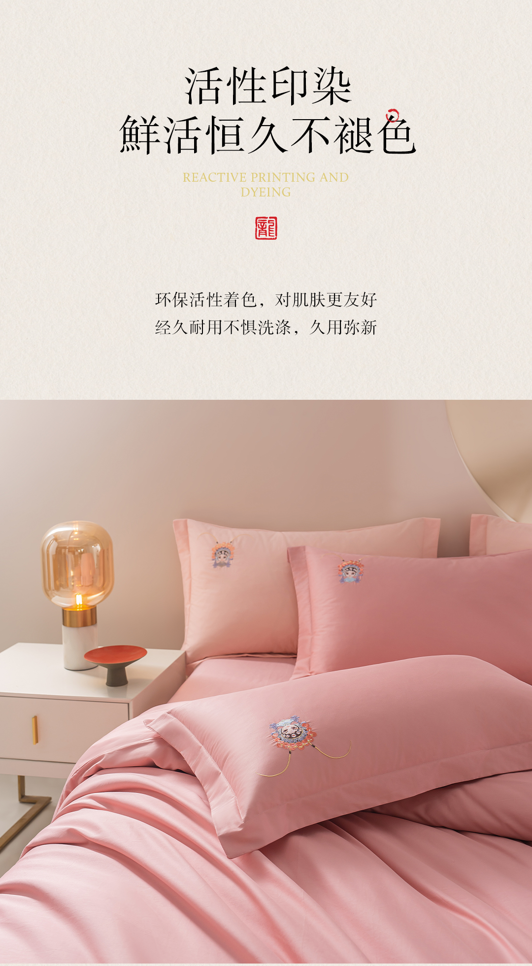2025佑金甜新款100支全棉贡缎中国风新疆长绒棉纯色双拼四件套(礼盒塑封包装) 花旦-樱落