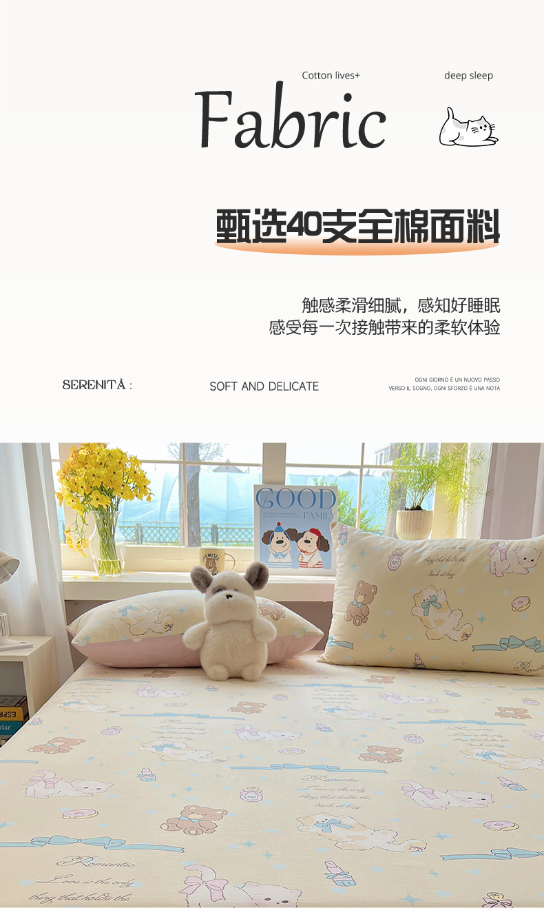 (总)六巷胡同 2025新款 INS减龄可爱风卡通全棉四件套第五系(森林音乐会系列),波点嘟嘟猫,点点面包犬,调皮蔷薇狗,哈喽泡芙猫,蓝格插画犬,森林音乐会