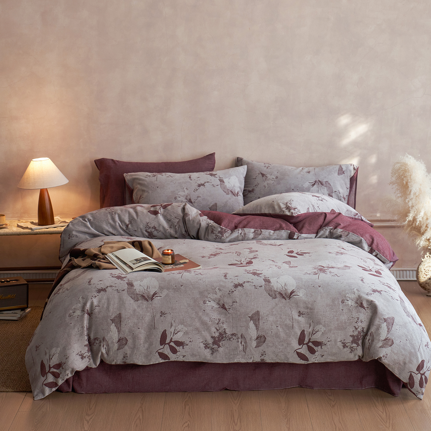 清雅福 2025新款A类全棉水洗色织大提花四件套 格林特-暗粉