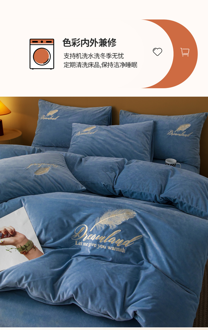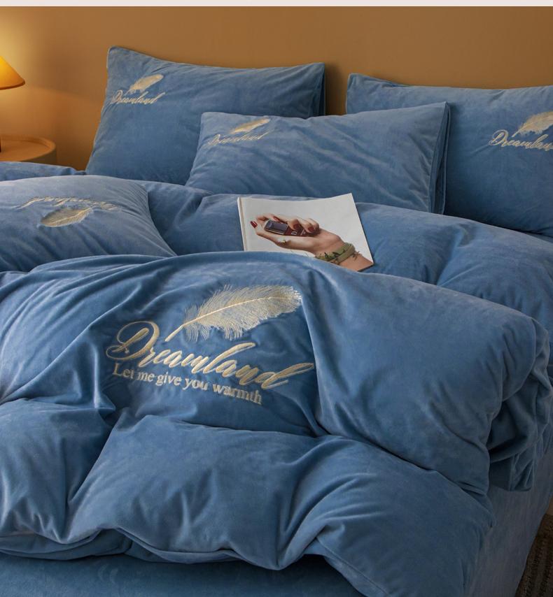 当前位置: 91家纺网 > 商品网购 > 床品套件 > 四件套 > 其它四件套 > 悦织湾家纺 2025新款水晶绒刺绣羽毛四件套纯色床单被套枕套学生宿舍单双人床三四件套 羽毛-宝蓝