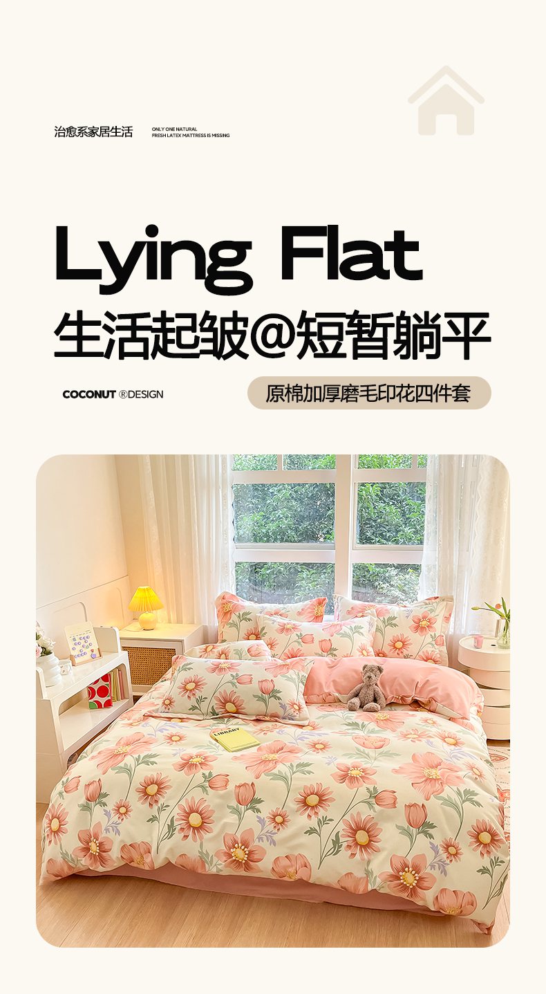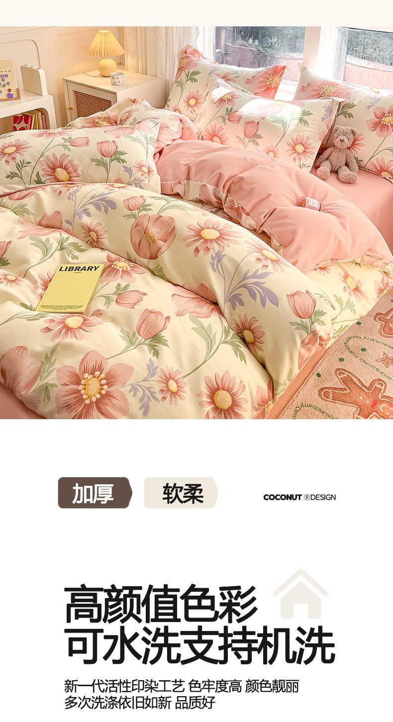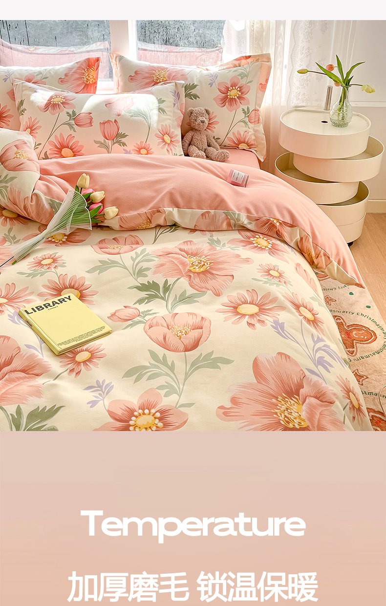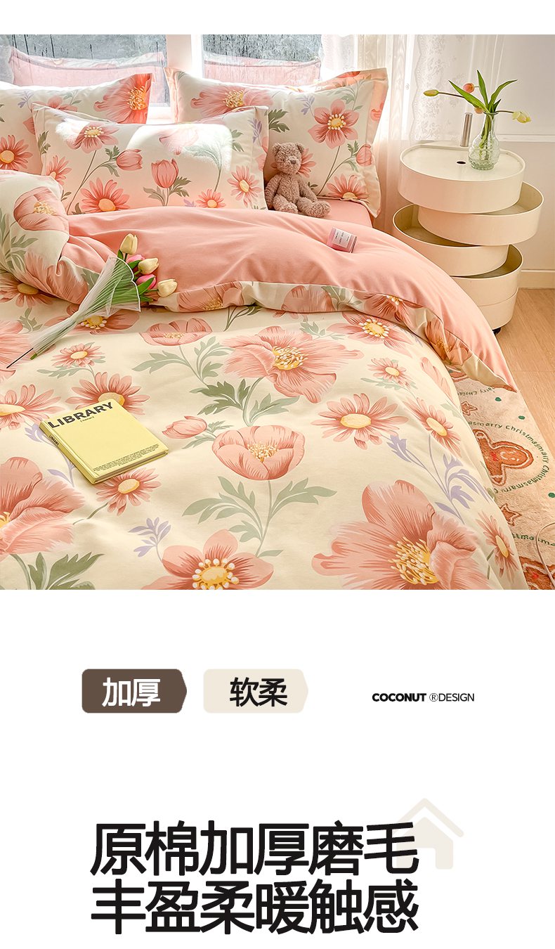 当前位置: 91家纺网 > 商品网购 > 床品套件 > 四件套 > 普通磨毛四件套 > 涵宸家纺 2025新款原棉加厚磨毛印花四件套 花漾
