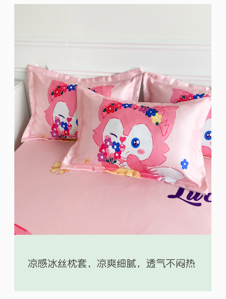 一电 2025新款夏季卡通冰丝凉席床单床笠可水洗凉席床笠学生宿舍单人裸睡空调席子冰丝席枕套 花朵狐