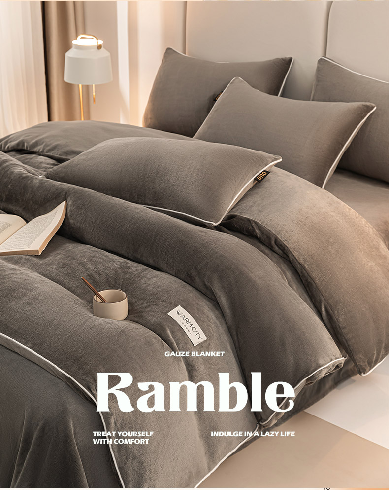 当前位置: 91家纺网 > 商品网购 > 床品套件 > 四件套 > 牛奶绒四件套 > 吾秀家居 2025秋冬新款简约撞色边滚绳牛奶绒四件套-浅爱 浅爱-深灰