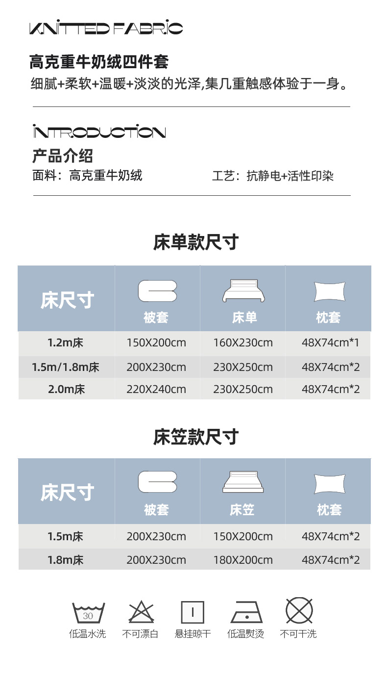 【床笠款】1.8四件套-被套200x230 | ¥105.00 |