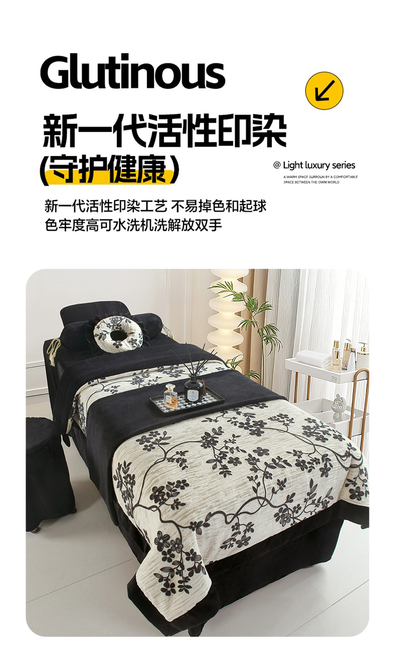 (总)千姿坊 2025新款秋冬加厚保暖牛奶绒美 容床罩四件套美 容院养生馆专用-叶语悠然,叶语悠然-黑色,叶语悠然-卡其,叶语悠然-浅灰