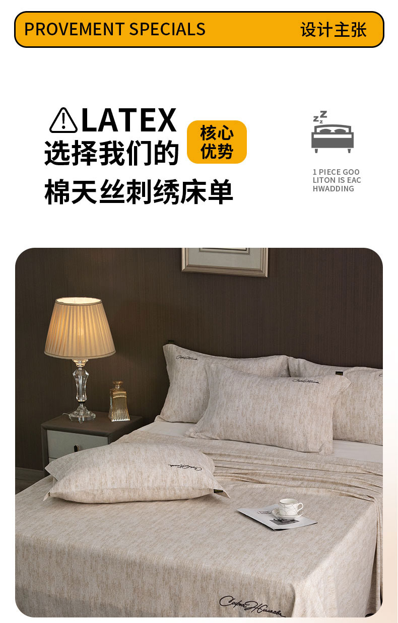 商品名称:春皖家纺 2025新款棉天丝纯色刺绣四件套单品系列-单床单 亮绮黄