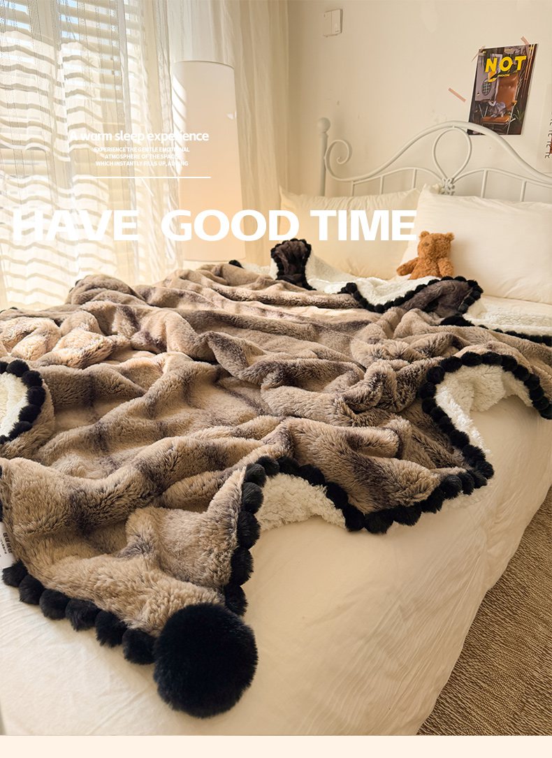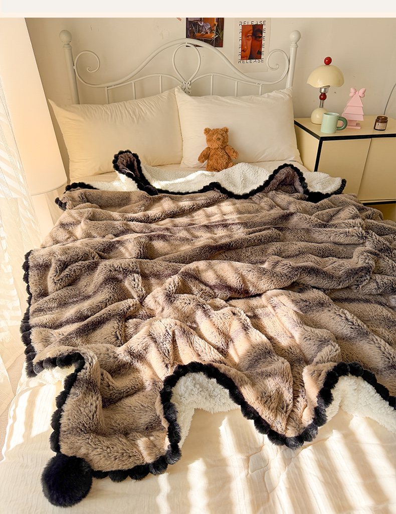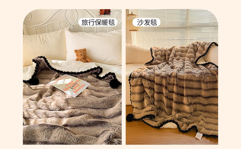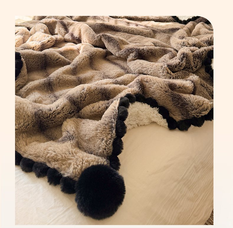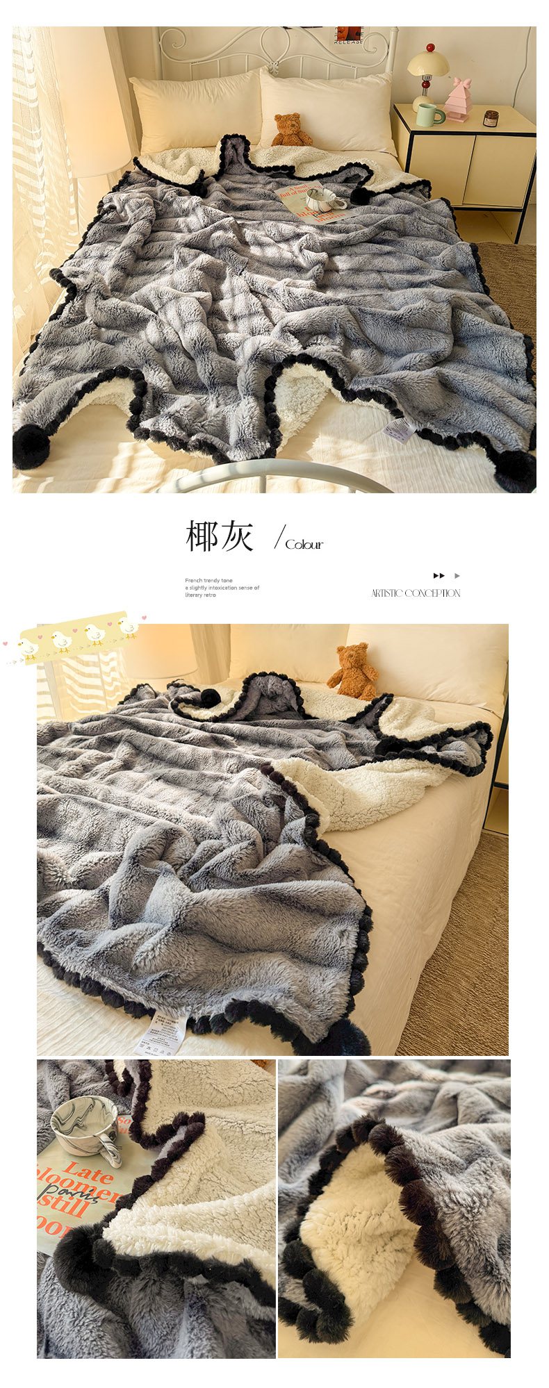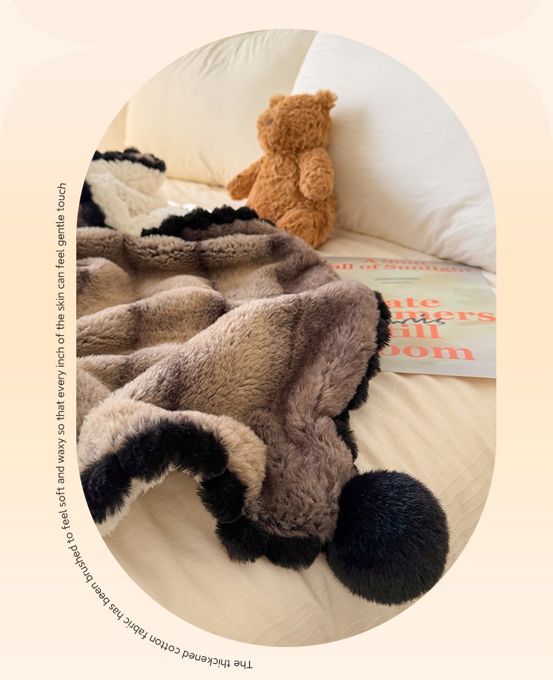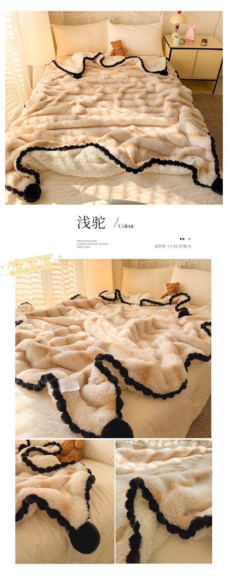 (总)潮邦创意家居 2025新款背印兔兔绒波纹花边球毯-云绒黑珠系列