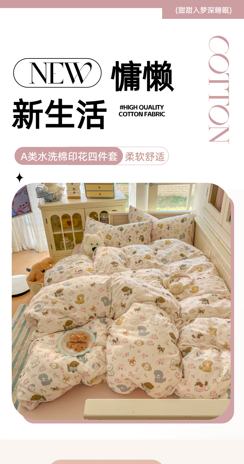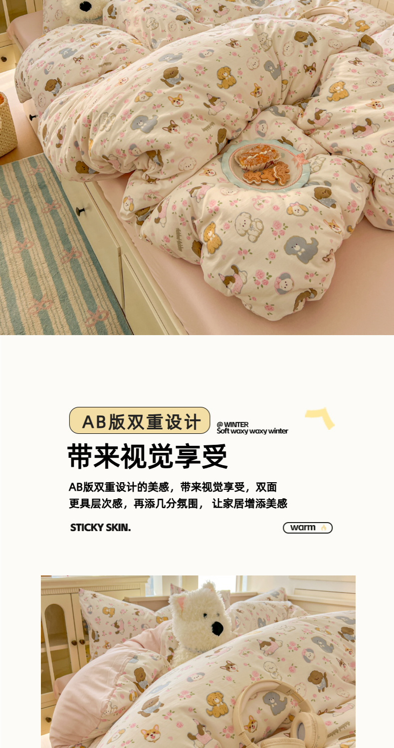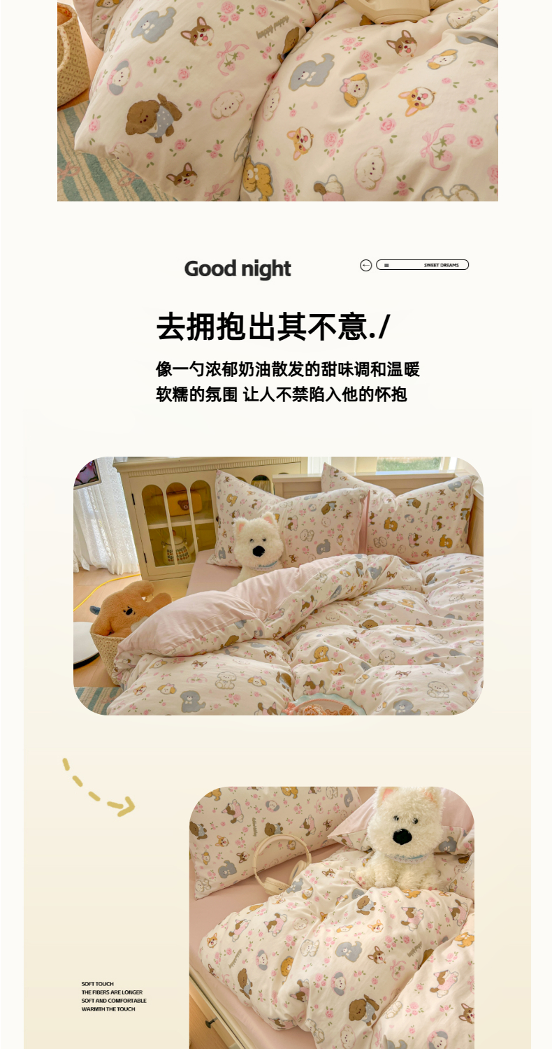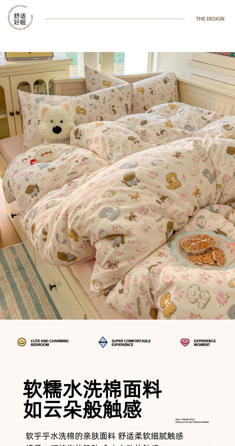 当前位置: 91家纺网 > 商品网购 > 床品套件 > 四件套 > 水洗棉四件套 > 冕悠家纺 2026新款超柔软105克卡通水洗棉四件套 提供买家秀 奶酪派派对