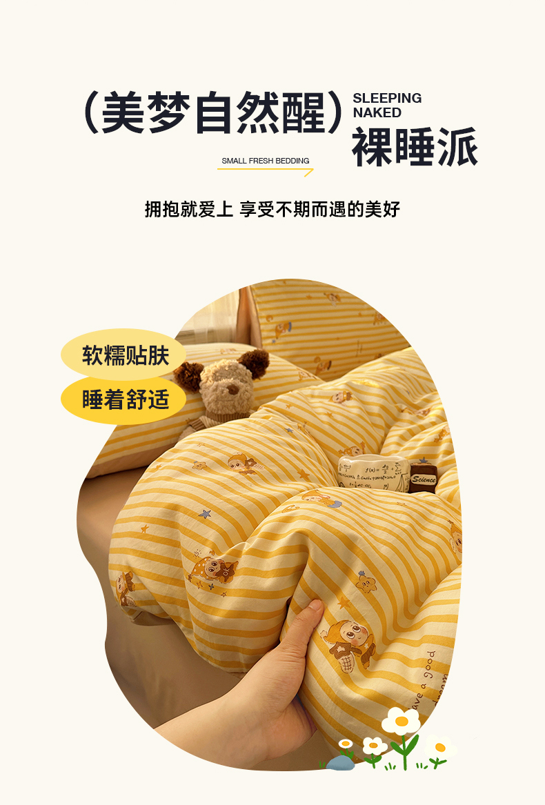 当前位置: 91家纺网 > 商品网购 > 床品套件 > 四件套 > 水洗棉四件套 > 初夏家纺 2026 古法仿棉水洗四件套A类被罩床单三件套床上用品卡通可爱【提供买家秀】 星仔