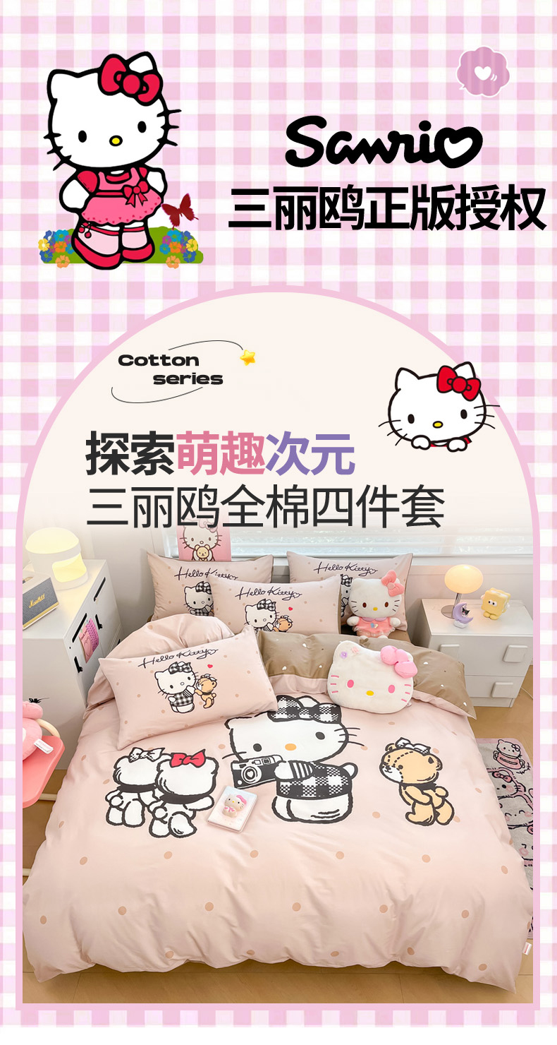当前位置: 91家纺网 > 商品网购 > 床品套件 > 四件套 > 全棉普通四件套 > 暮思家居 2026新款正版授权三丽鸥大版全棉纯棉数码印花纯棉四件套系列-第一批 大版-时尚KT