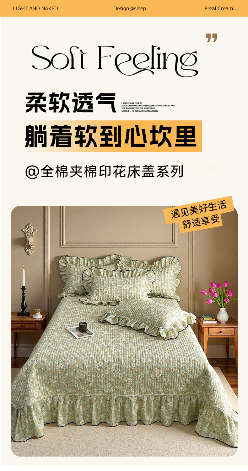 (总)宜凡家纺 2026新款全棉夹棉印花床盖款三件套,安洛特 灰,安洛特 米,安冉之夏,半岛玫瑰,繁花锦年,芳伊娜,莫里,紫藤花