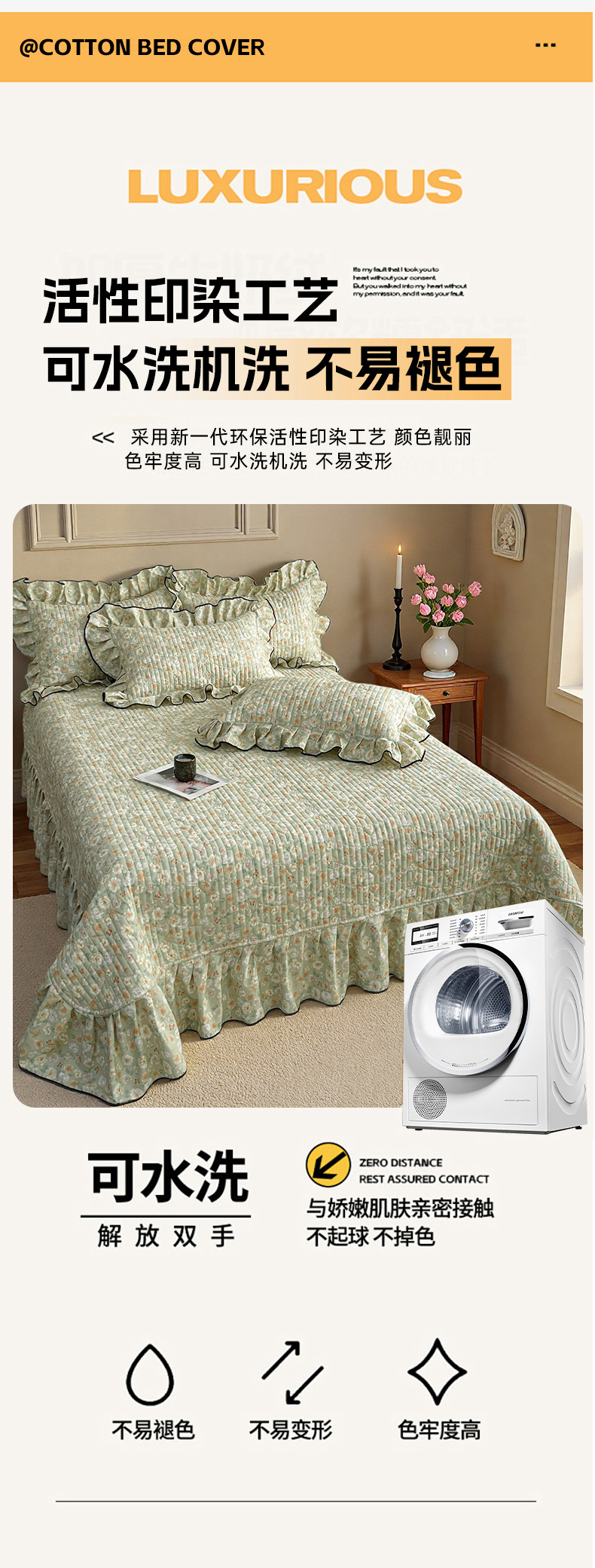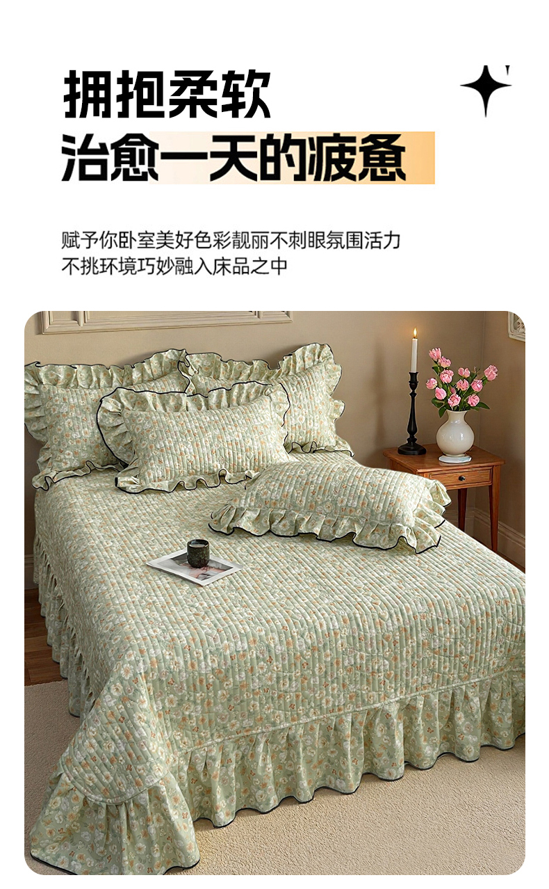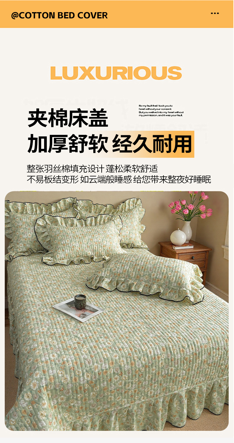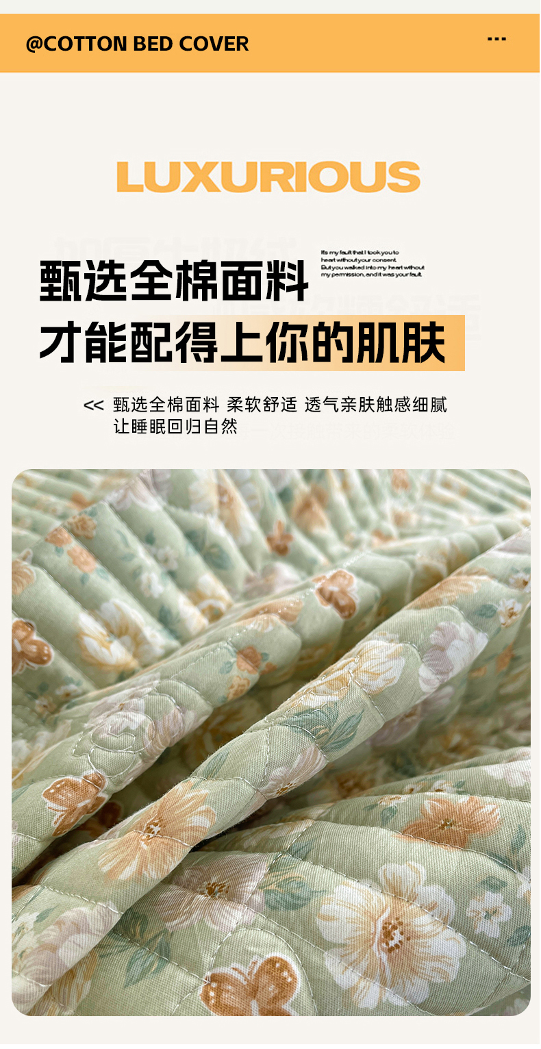 • 91家纺网 家纺一手货源 找家纺 宜凡家纺 2026新款全棉夹棉印花床盖款三件套 繁花锦年