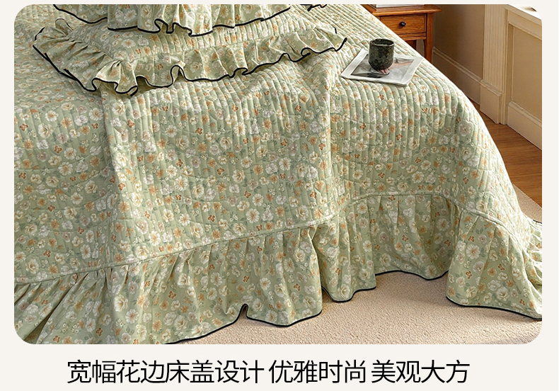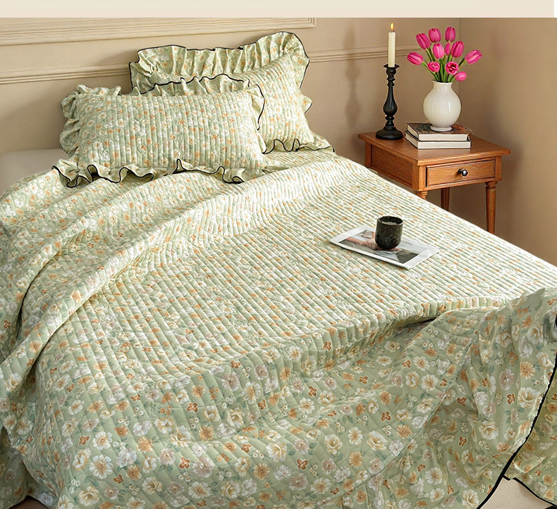 宜凡家纺 2026新款全棉夹棉印花床盖款三件套 繁花锦年