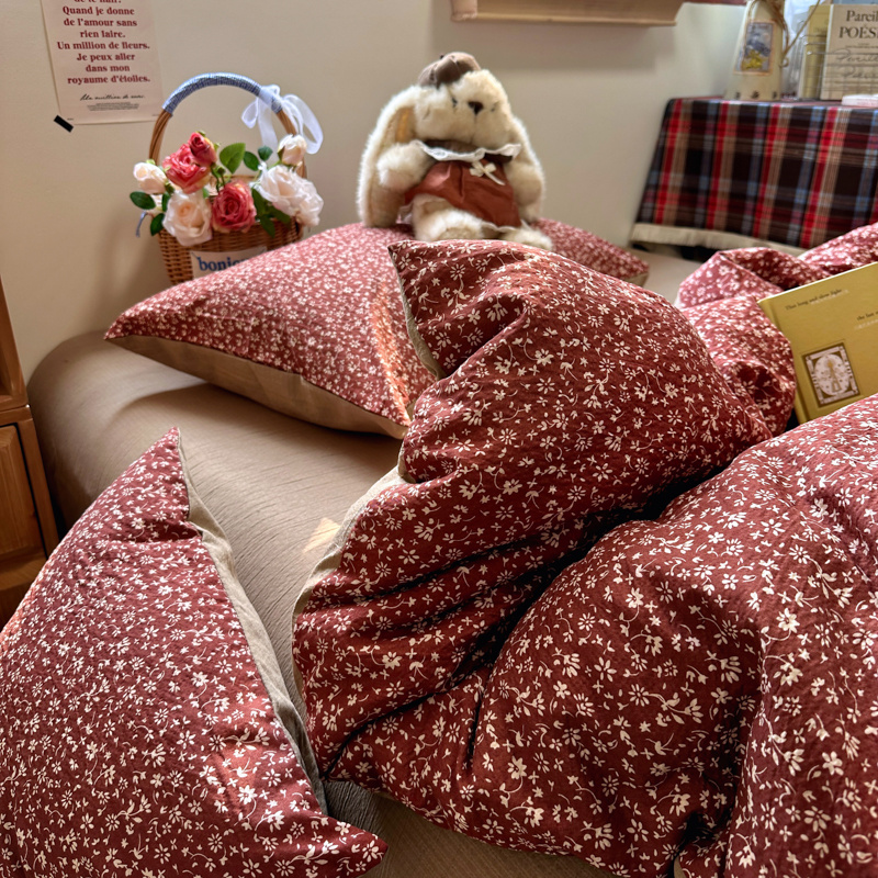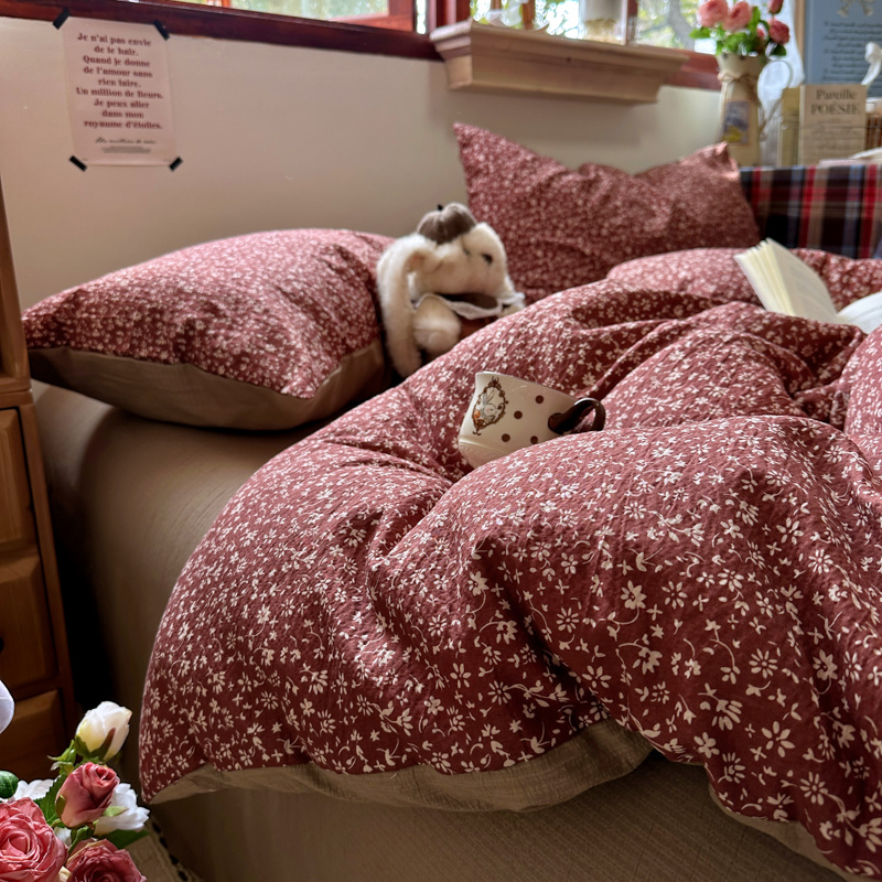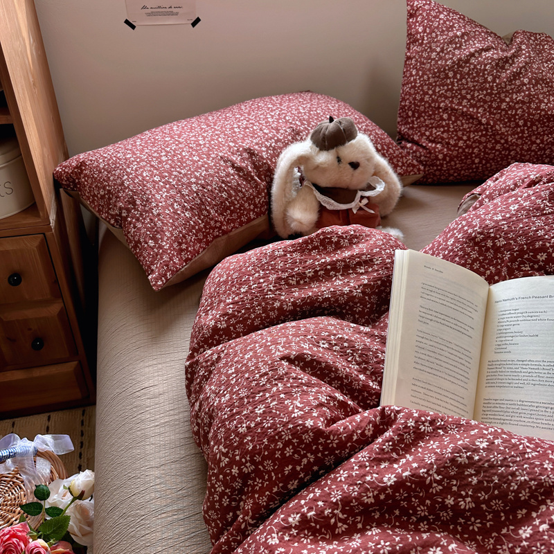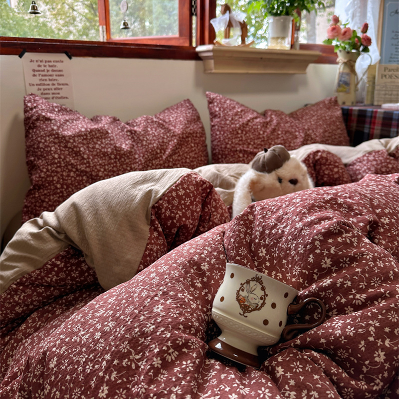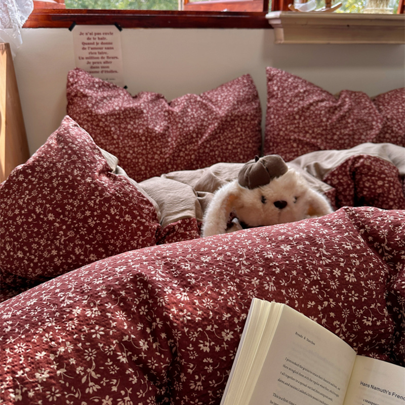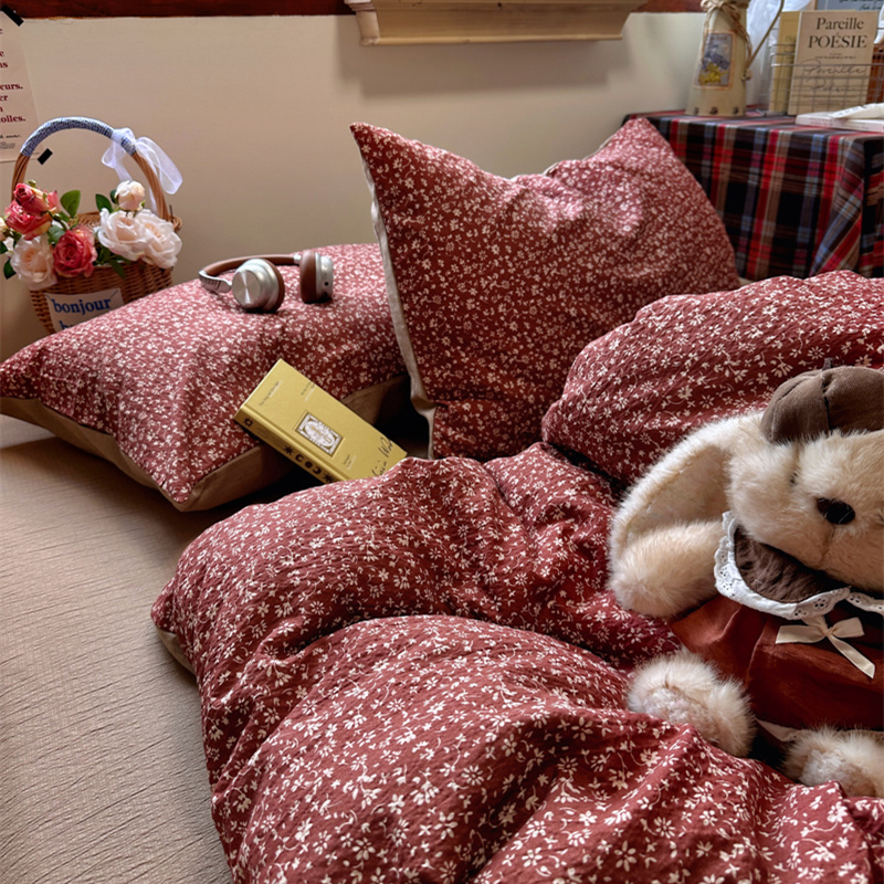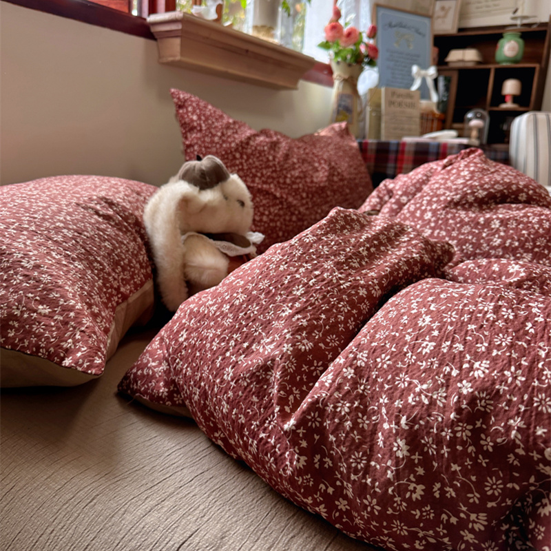 当前位置: 91家纺网 > 商品网购 > 床品套件 > 四件套 > 化纤活性四件套 > 阿曼达 2026新款日韩系复古印花小碎花软糯贴肤慵懒伴眠超治愈的床单床笠款四件套 小印-林间序.红