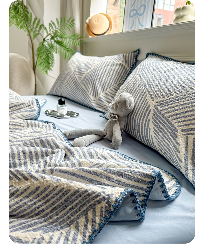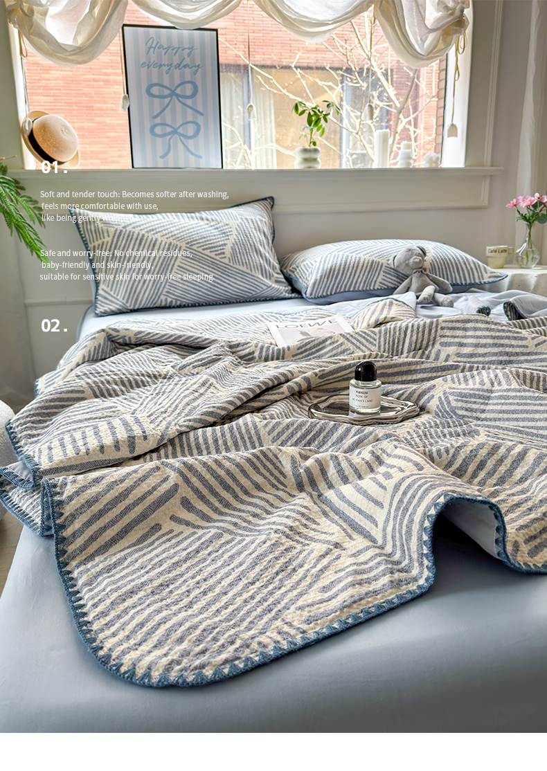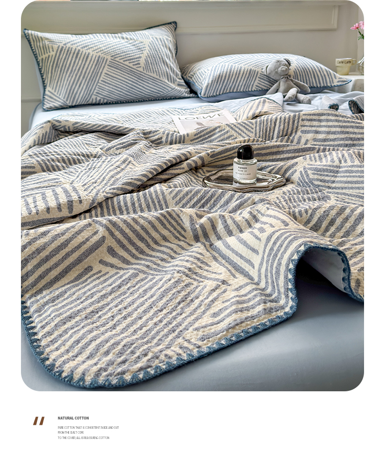 雯雨家纺 2026新款里外全棉华夫格三角针夏被 简森蓝
