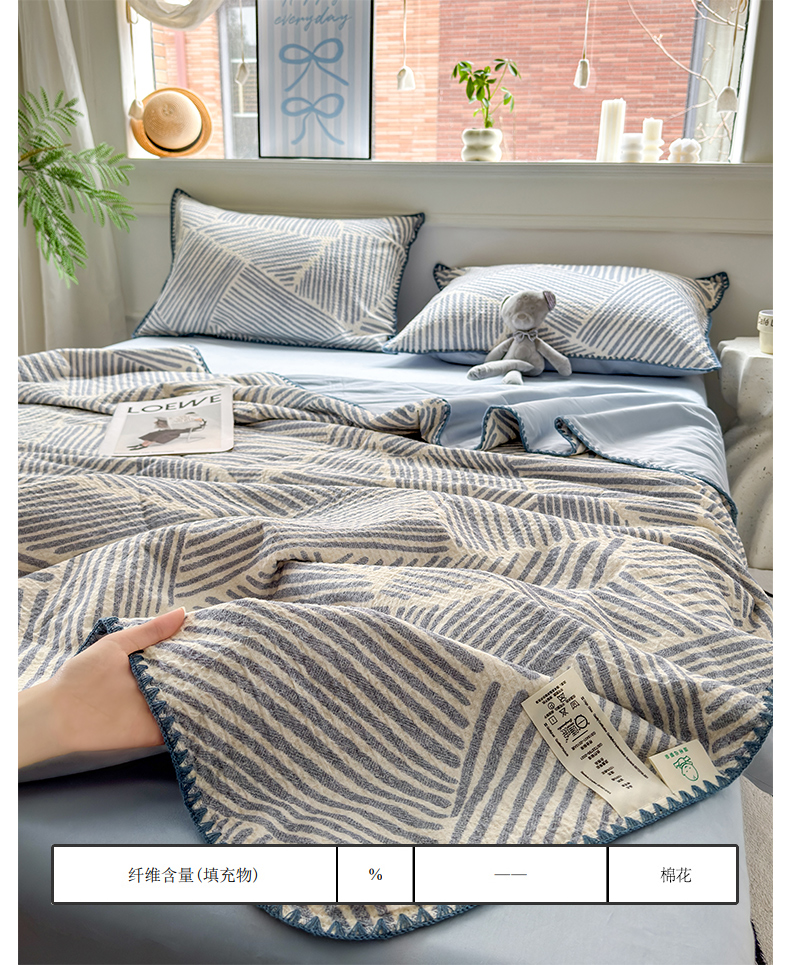 当前位置: 91家纺网 > 商品网购 > 被子 > 夏被 > 雯雨家纺 2026新款里外全棉华夫格三角针夏被 简森蓝