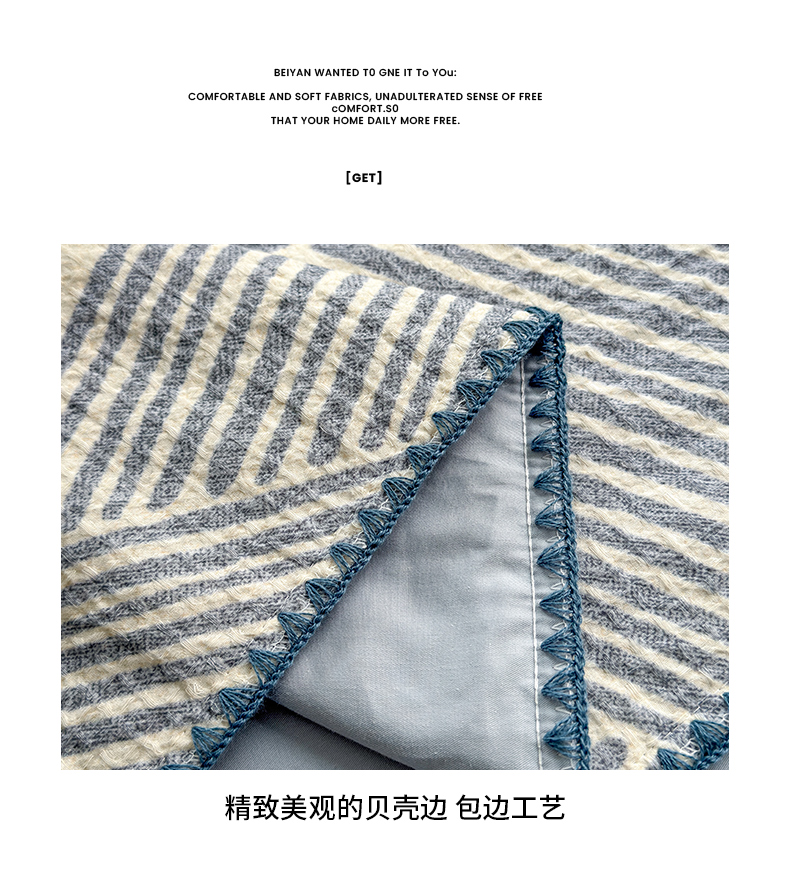 • 91家纺网 家纺一手货源 找家纺 雯雨家纺 2026新款里外全棉华夫格三角针夏被 简森蓝