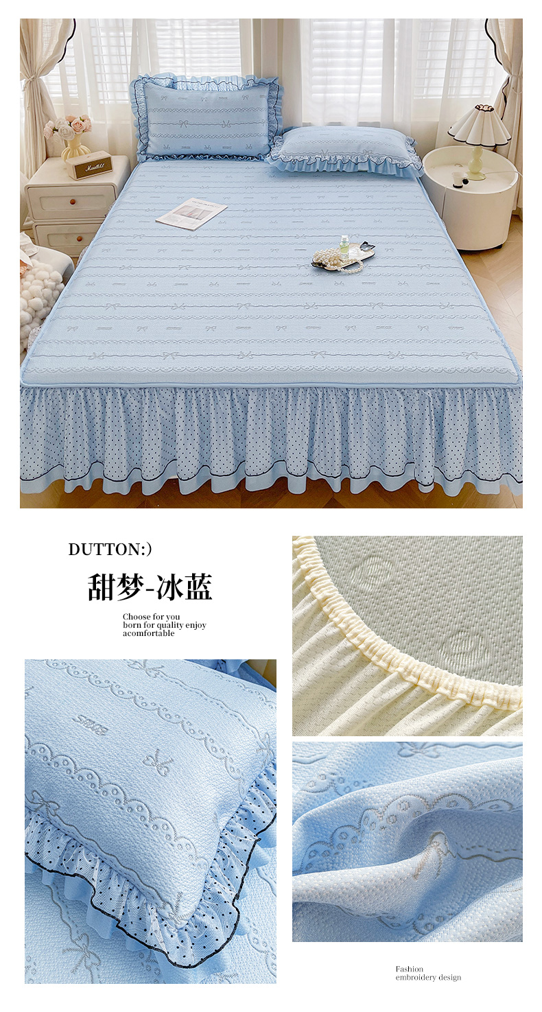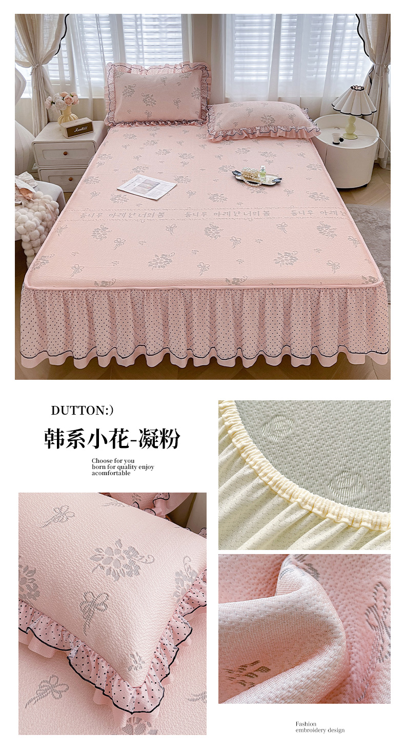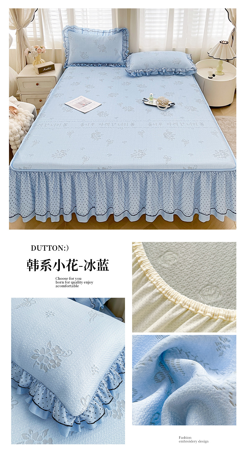 当前位置: 91家纺网 > 商品网购 > 床上用品 > 凉席 > 其他凉席 > 眠势力 2026新款冰豆豆床裙款床笠夏天冰凉豆豆空调席子带花边床裙床笠二合一 韩系小花-雾米