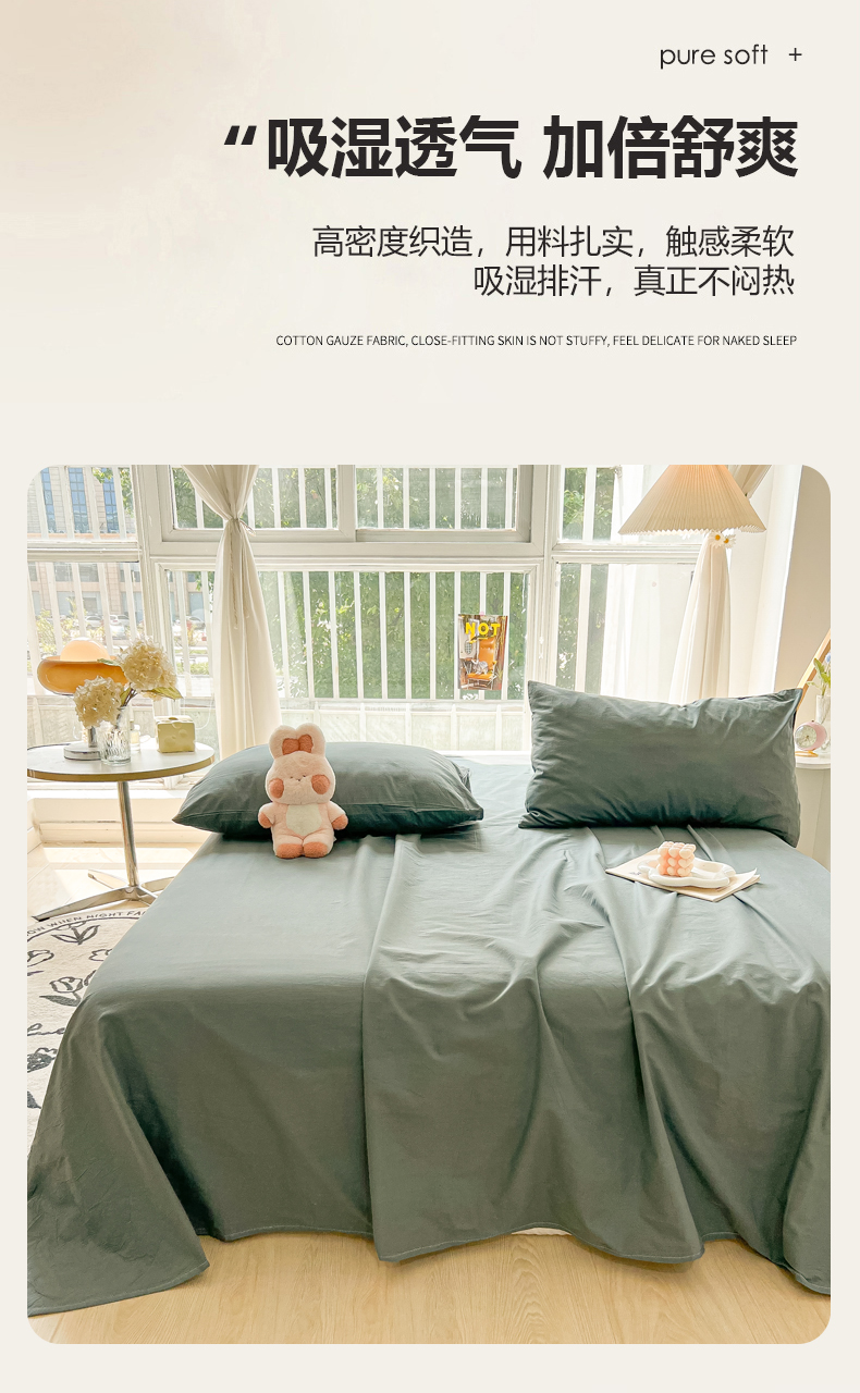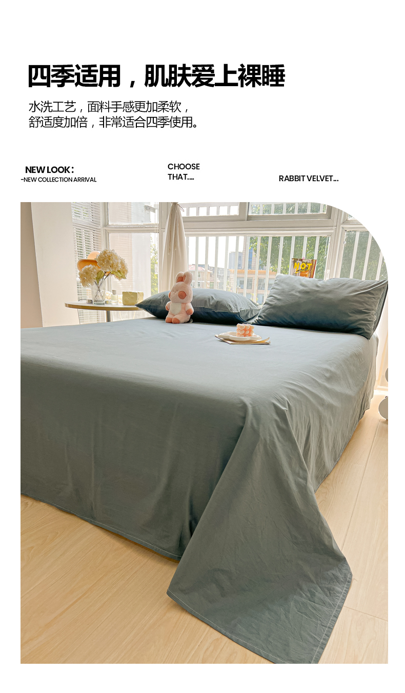 爱彼家纺 2026新款夏季新款纯色磨毛亲肤柔软单床单床单三件套 纯色-雾兰