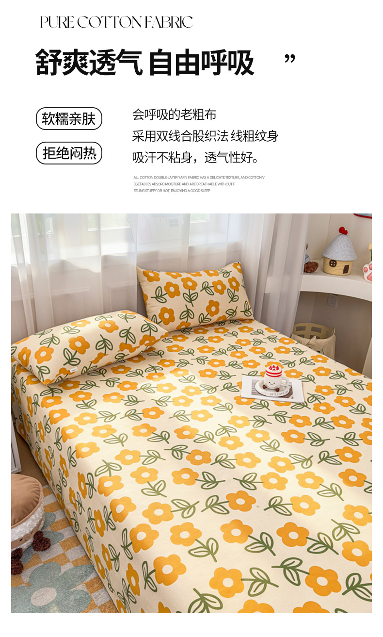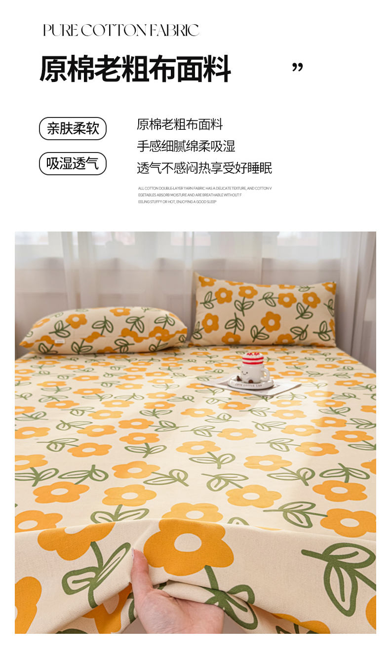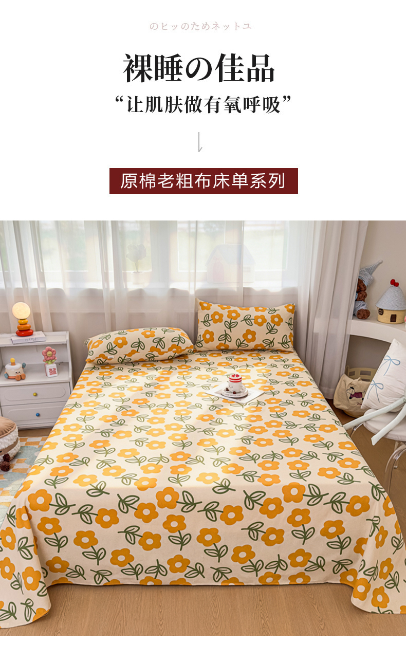 (总)爱彼家纺 2026夏季新款亲肤原棉老粗布透气印花床单单件热门热门床单款新升级-细沙老粗布,白多花园,波点蝴蝶结,纯绿,橄榄绿,花海,橘色条纹,卡其,蓝白条,蓝菊绘,绿果花香,马上发财,摩洛哥小狗,甜樱萌犬,小熊之家,星海蓝,星空灰,约定条纹,竹小熊