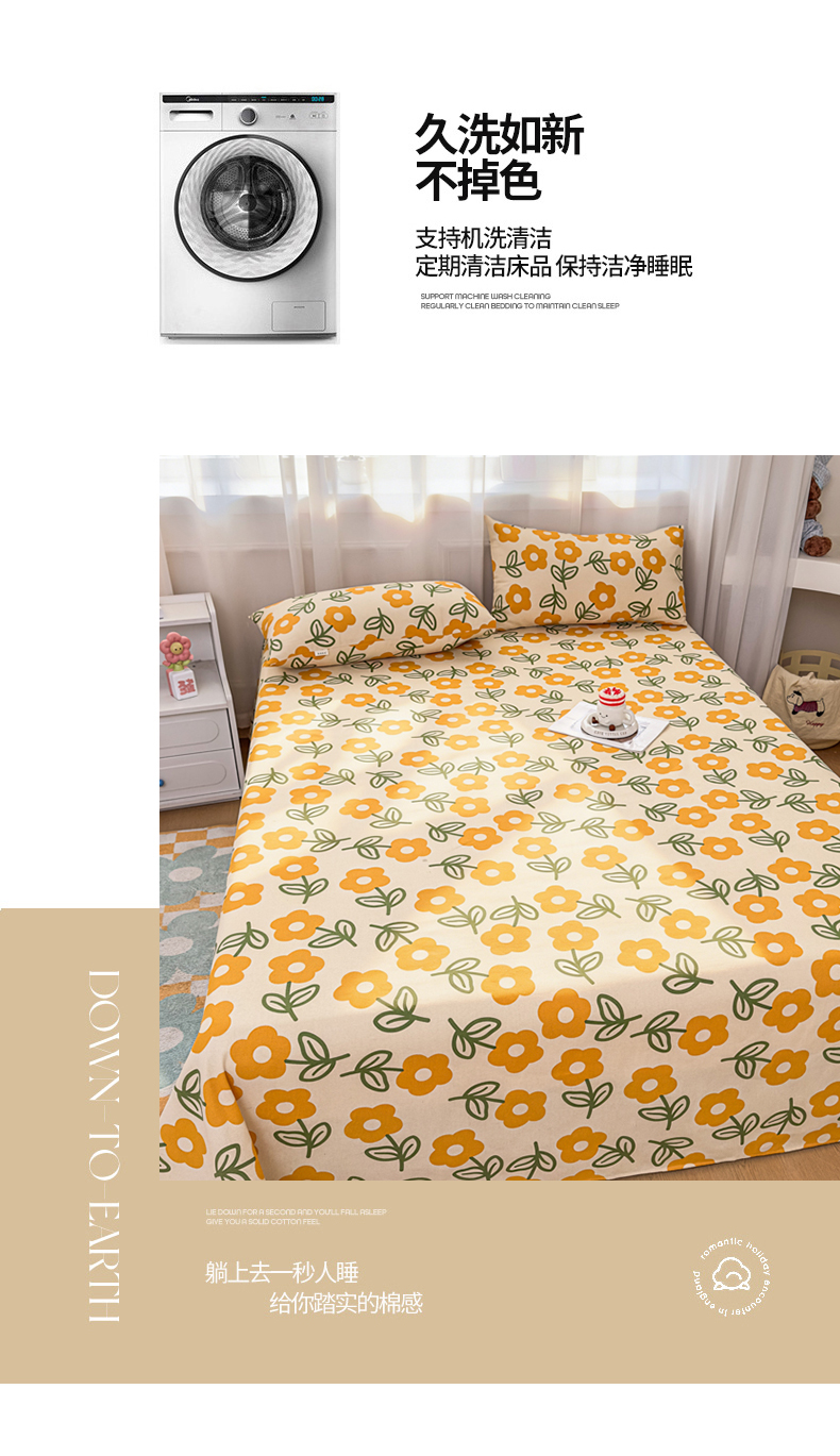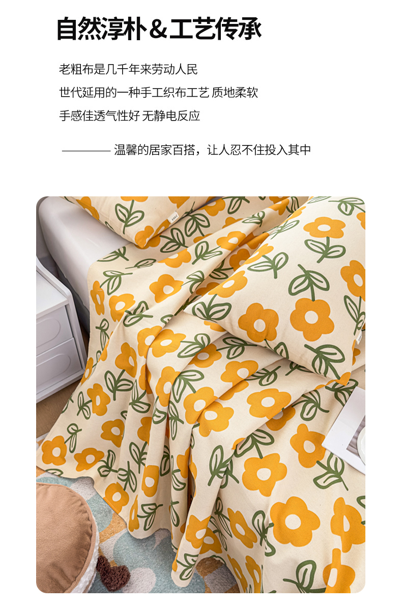 • 91家纺网 家纺一手货源 找家纺 爱彼家纺 2026夏季新款亲肤原棉老粗布透气印花床单单件热门热门床单款新升级-细沙老粗布 花海