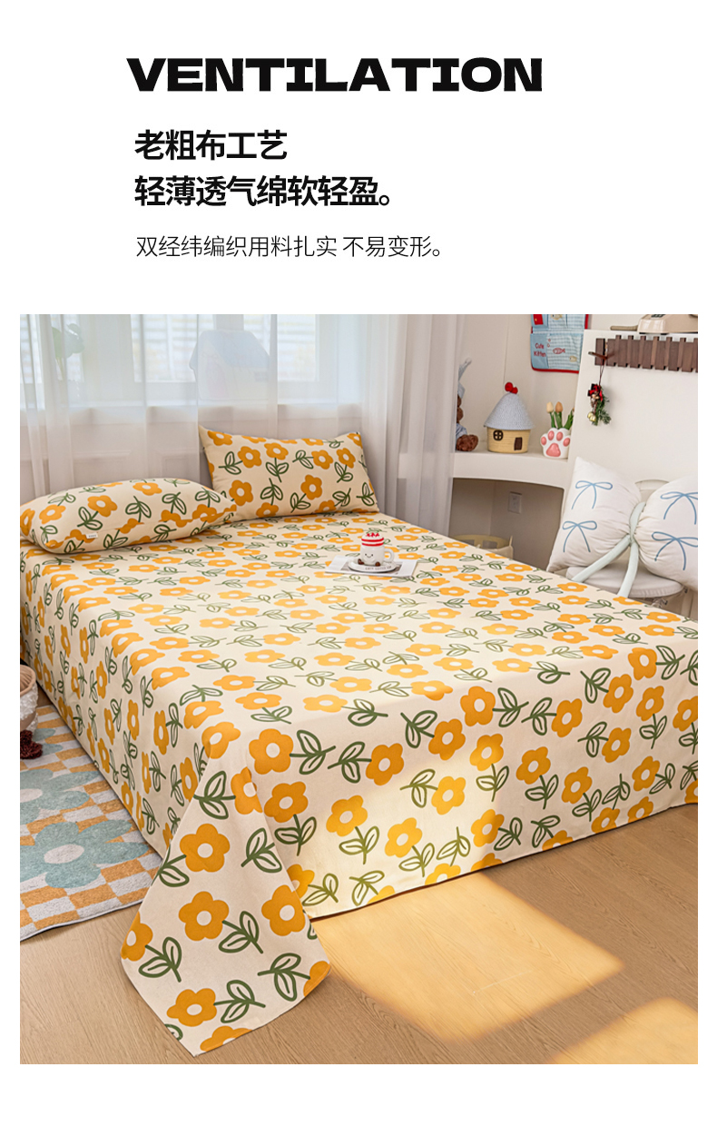 爱彼家纺 2026夏季新款亲肤原棉老粗布透气印花床单单件热门热门床单款新升级-细沙老粗布 花海