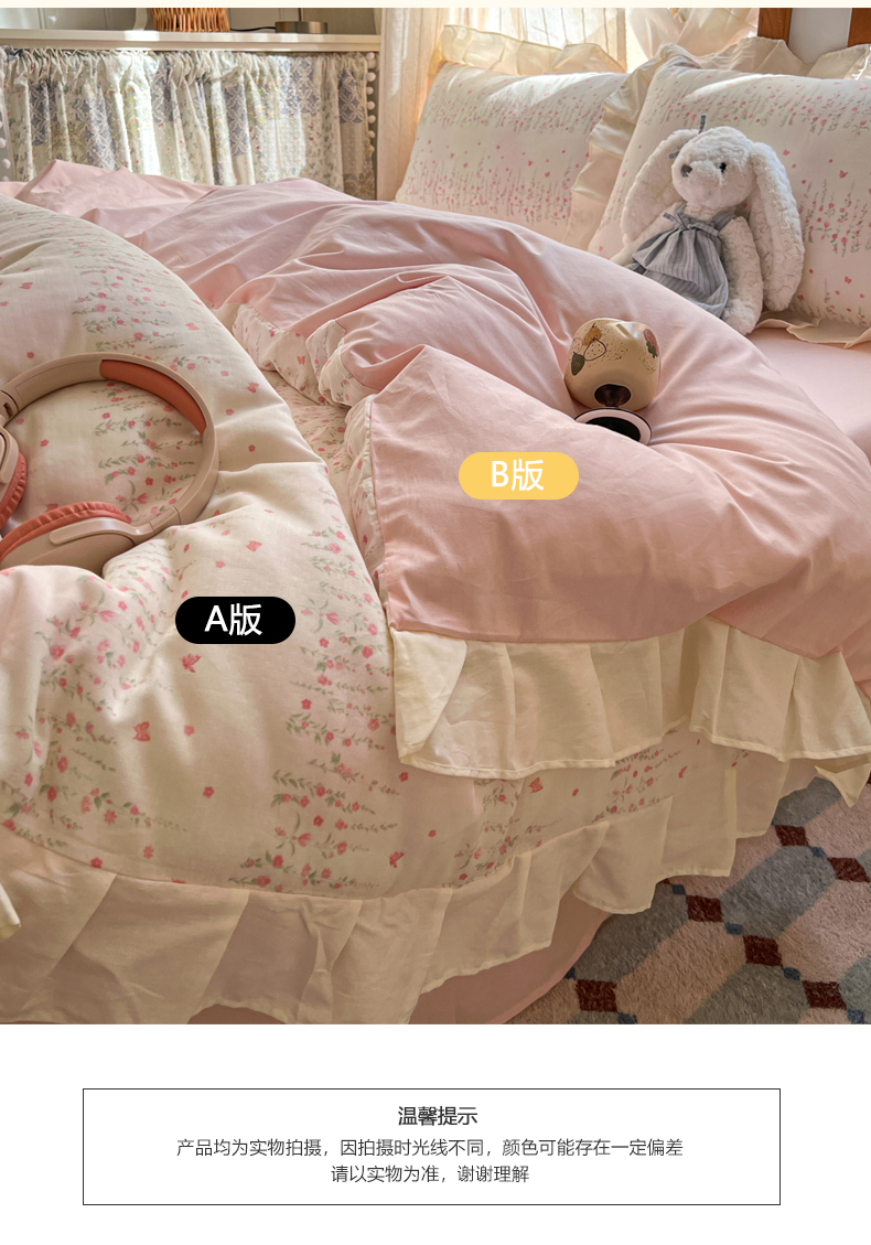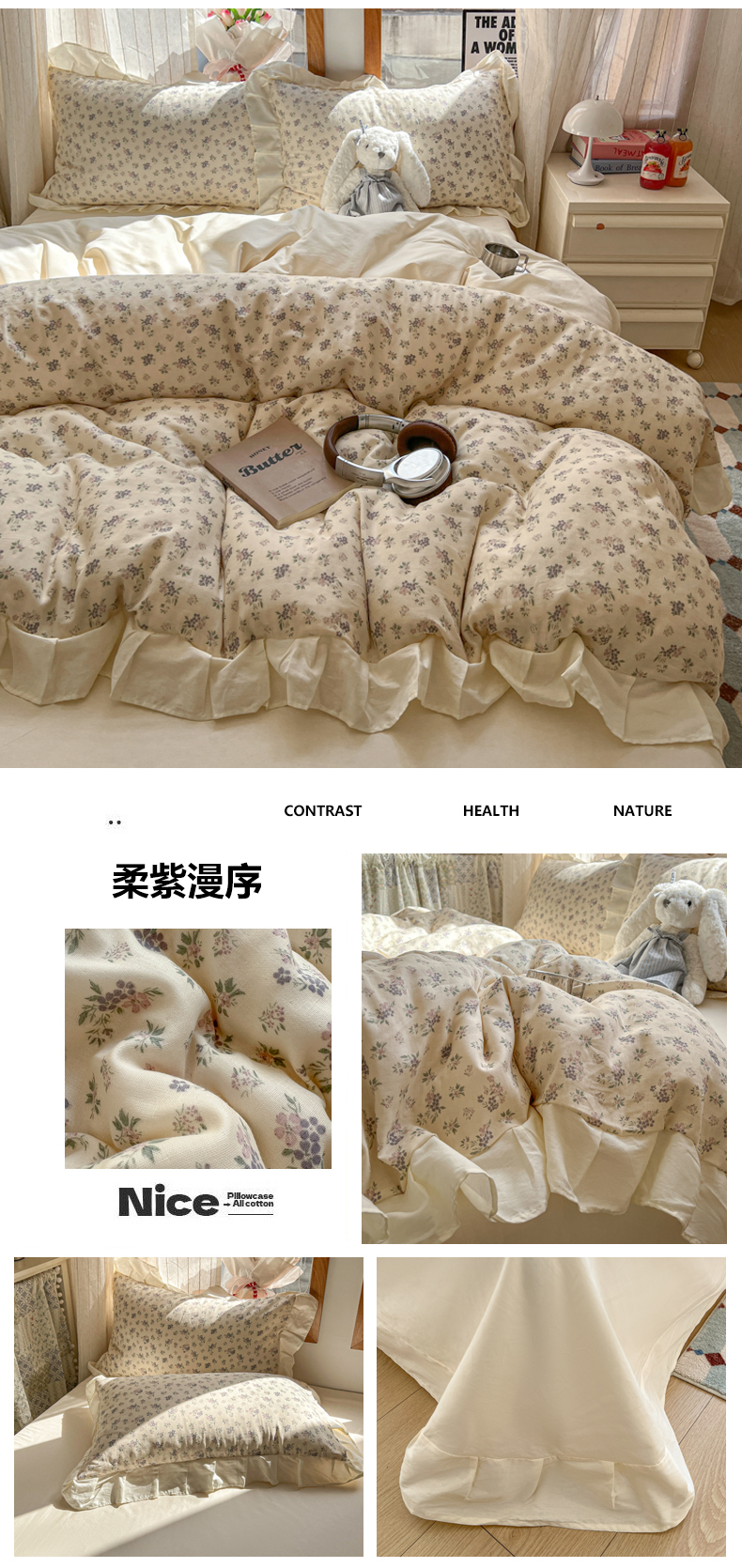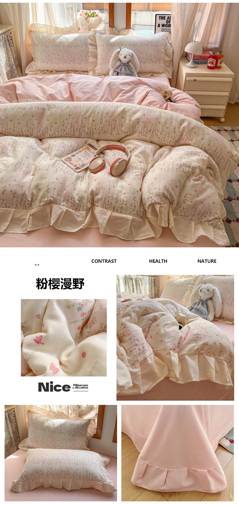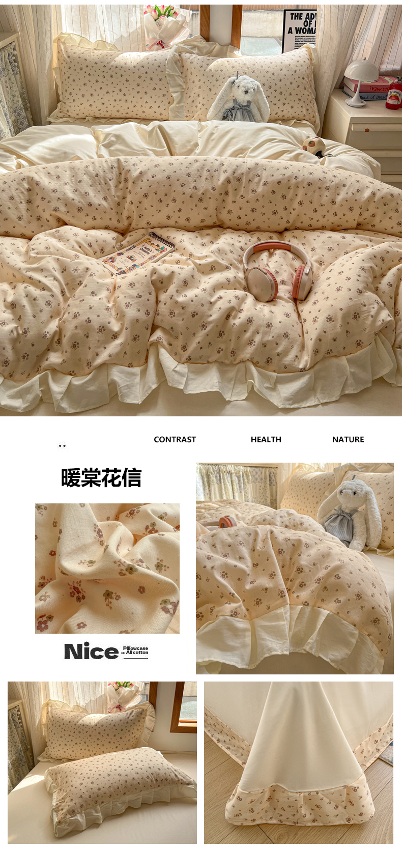 当前位置: 91家纺网 > 商品网购 > 床品套件 > 四件套 > 全棉普通四件套 > 耀悦家纺 2026新款全棉纯棉双层纱花边四件套a类新中式小清新床笠枕套被套 暖棠花信